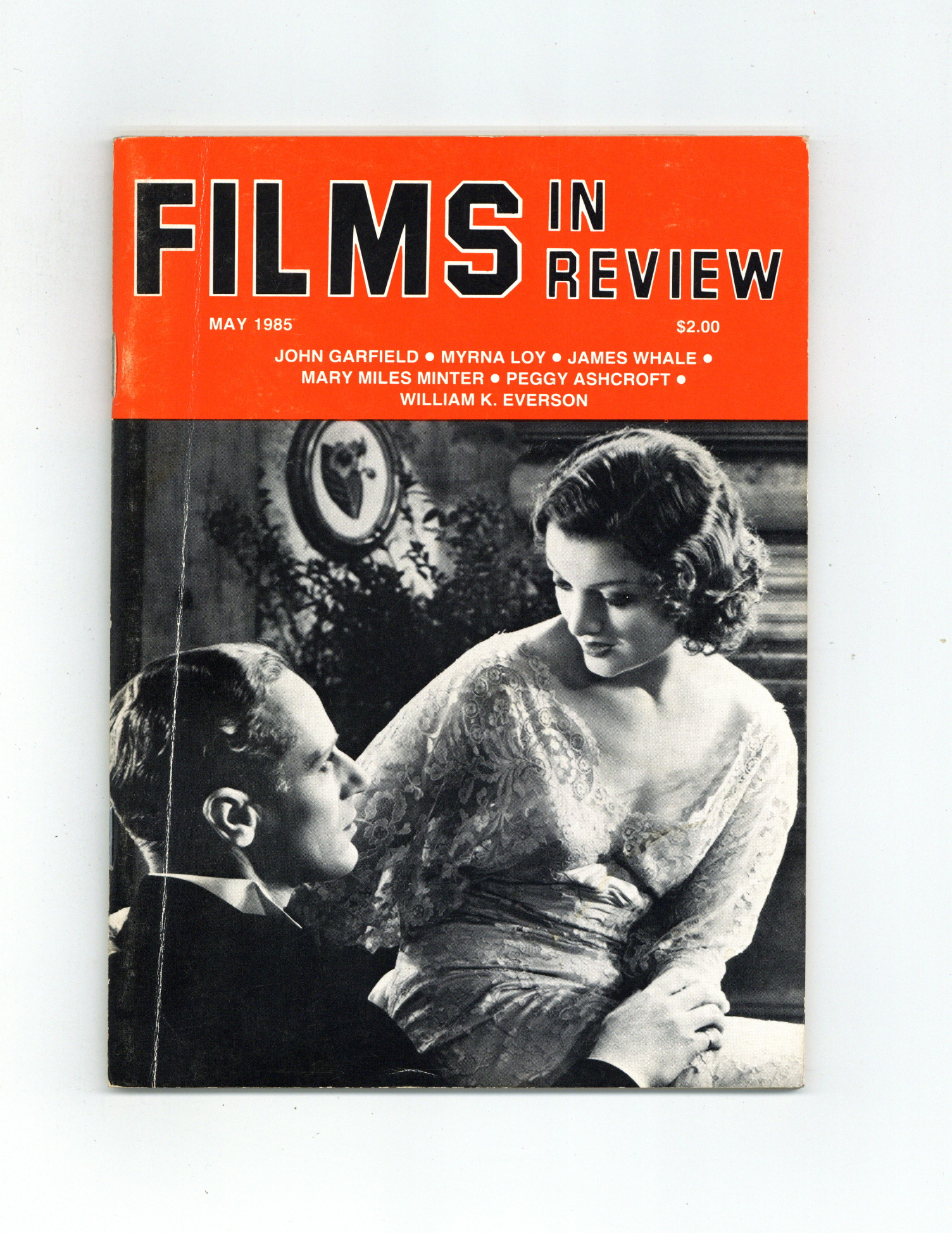 Published May 1985 by National Board of Review of Motion Pictures Inc..$7.20Film in Review is a publication of the National Board of Review of Motion Pictures, Inc, an independent, non-profit organization of public citizens founded in 1909 to represent the interests of the motion picture public. This National Board further assists the development of the motion picture as a source of entertainment, as education, and as art, by providing media for the expression of the public's opinion about films and their cultural and social effects. 5 1/2-in. x 7 1/2-in., 64 pages, B&W. Cover price $2.00.