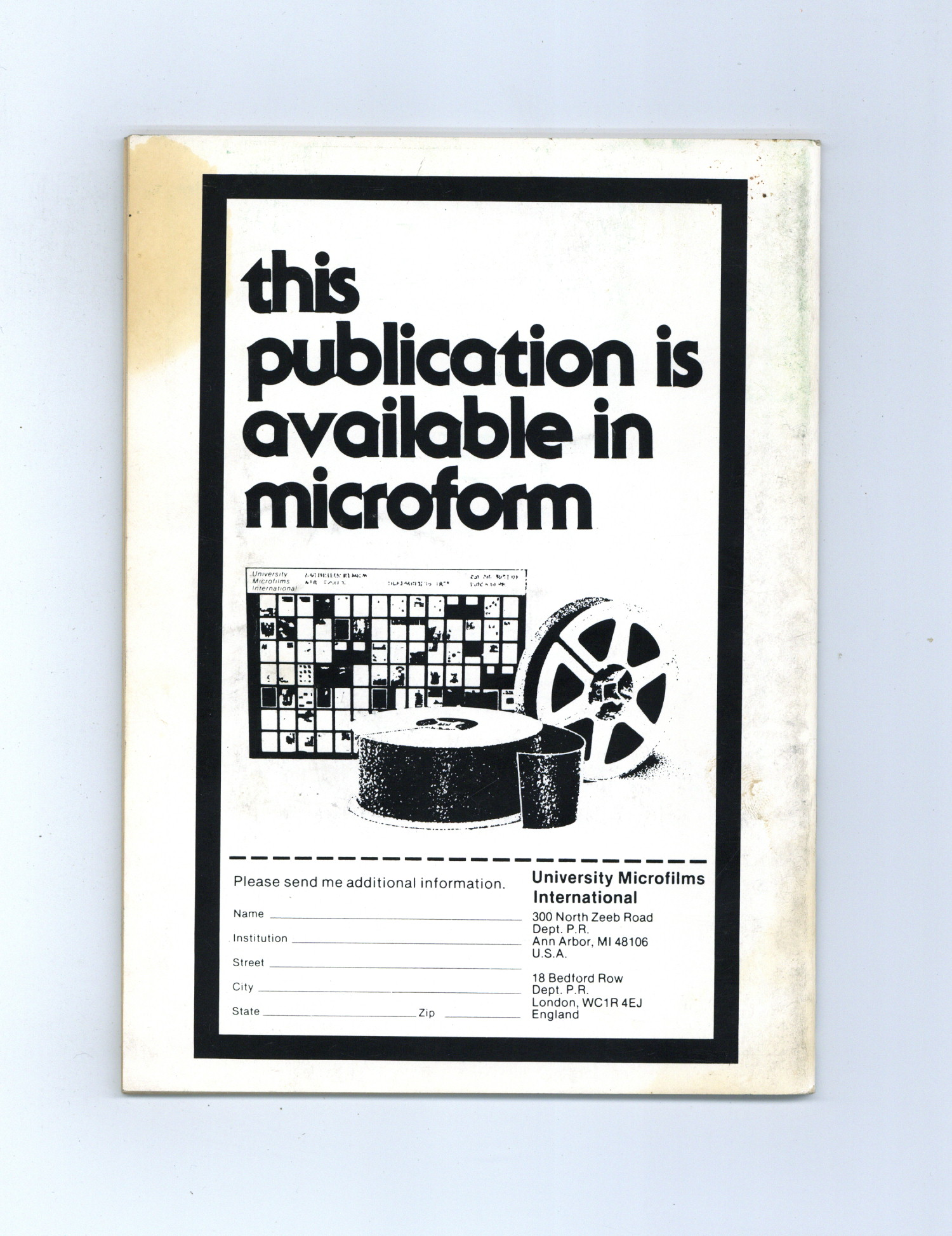Published Oct 1985 by National Board of Review of Motion Pictures Inc..$7.20- Water damage: Moderate.
