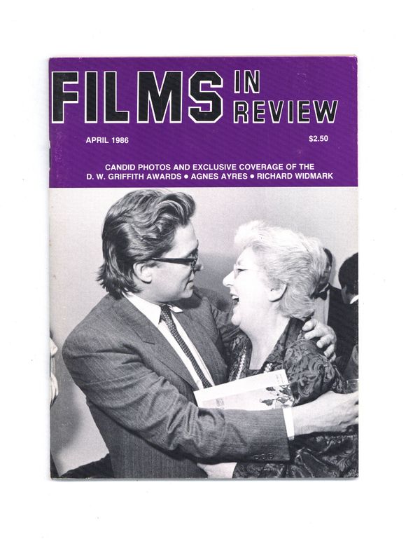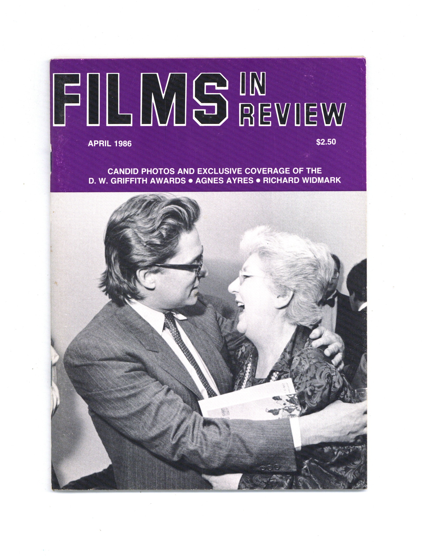 Published Apr 1986 by National Board of Review of Motion Pictures Inc..$17.00Film in Review is a publication of the National Board of Review of Motion Pictures, Inc, an independent, non-profit organization of public citizens founded in 1909 to represent the interests of the motion picture public. This National Board further assists the development of the motion picture as a source of entertainment, as education, and as art, by providing media for the expression of the public's opinion about films and their cultural and social effects. 5 1/2-in. x 7 1/2-in., 64 pages, B&W. Cover price $2.50.