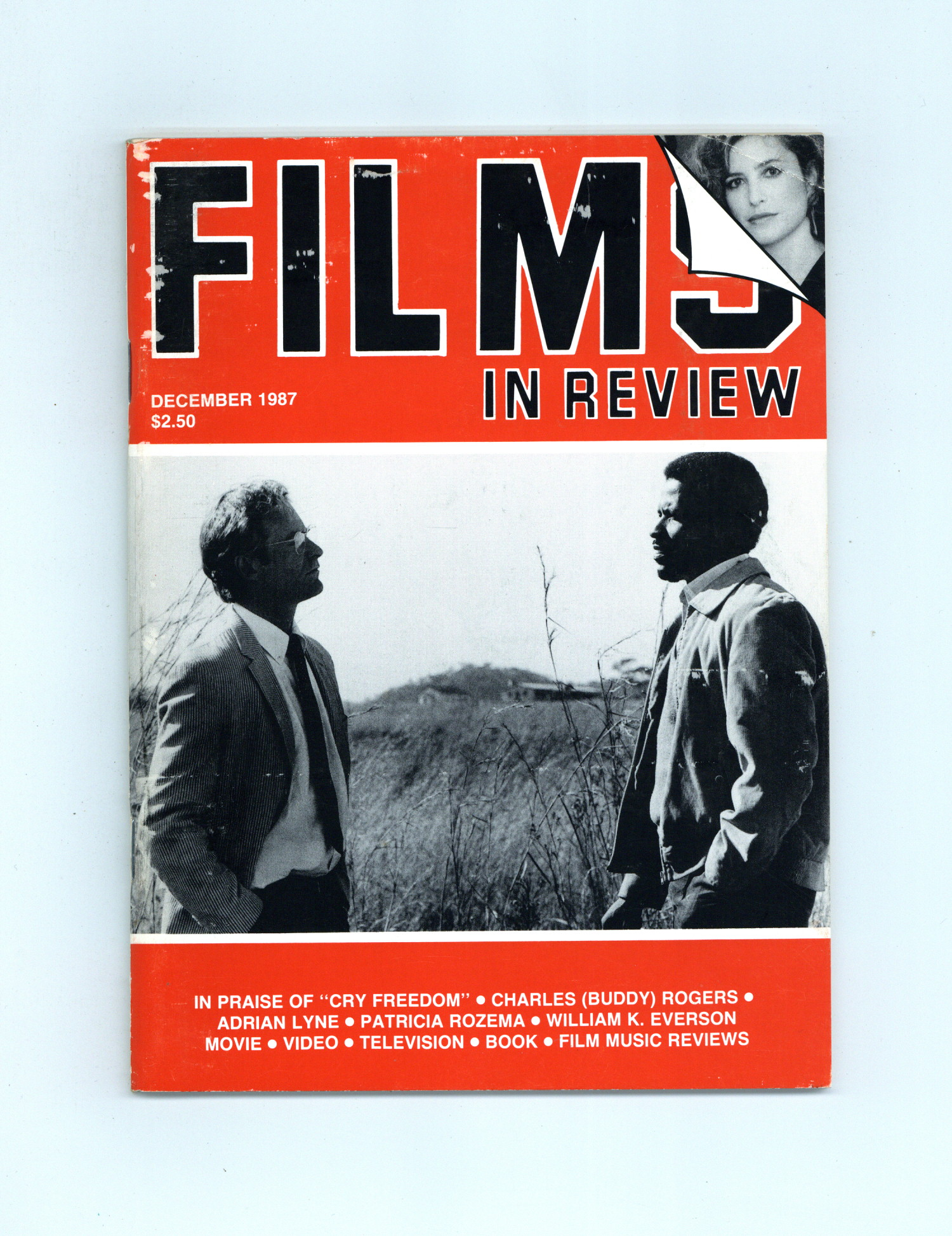 Published Dec 1987 by National Board of Review of Motion Pictures Inc..$15.00Film in Review is a publication of the National Board of Review of Motion Pictures, Inc, an independent, non-profit organization of public citizens founded in 1909 to represent the interests of the motion picture public. This National Board further assists the development of the motion picture as a source of entertainment, as education, and as art, by providing media for the expression of the public's opinion about films and their cultural and social effects. 5 1/2-in. x 7 1/2-in., 64 pages, B&W. Cover price $2.50.
