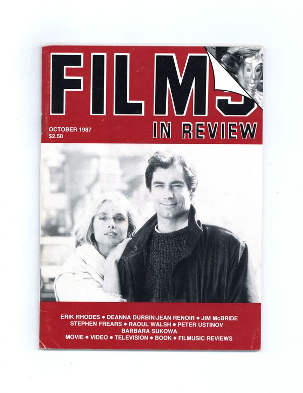 Published Dec 1987 by National Board of Review of Motion Pictures Inc..$17.00Film in Review is a publication of the National Board of Review of Motion Pictures, Inc, an independent, non-profit organization of public citizens founded in 1909 to represent the interests of the motion picture public. This National Board further assists the development of the motion picture as a source of entertainment, as education, and as art, by providing media for the expression of the public's opinion about films and their cultural and social effects. 5 1/2-in. x 7 1/2-in., 64 pages, B&W. Cover price $2.50.