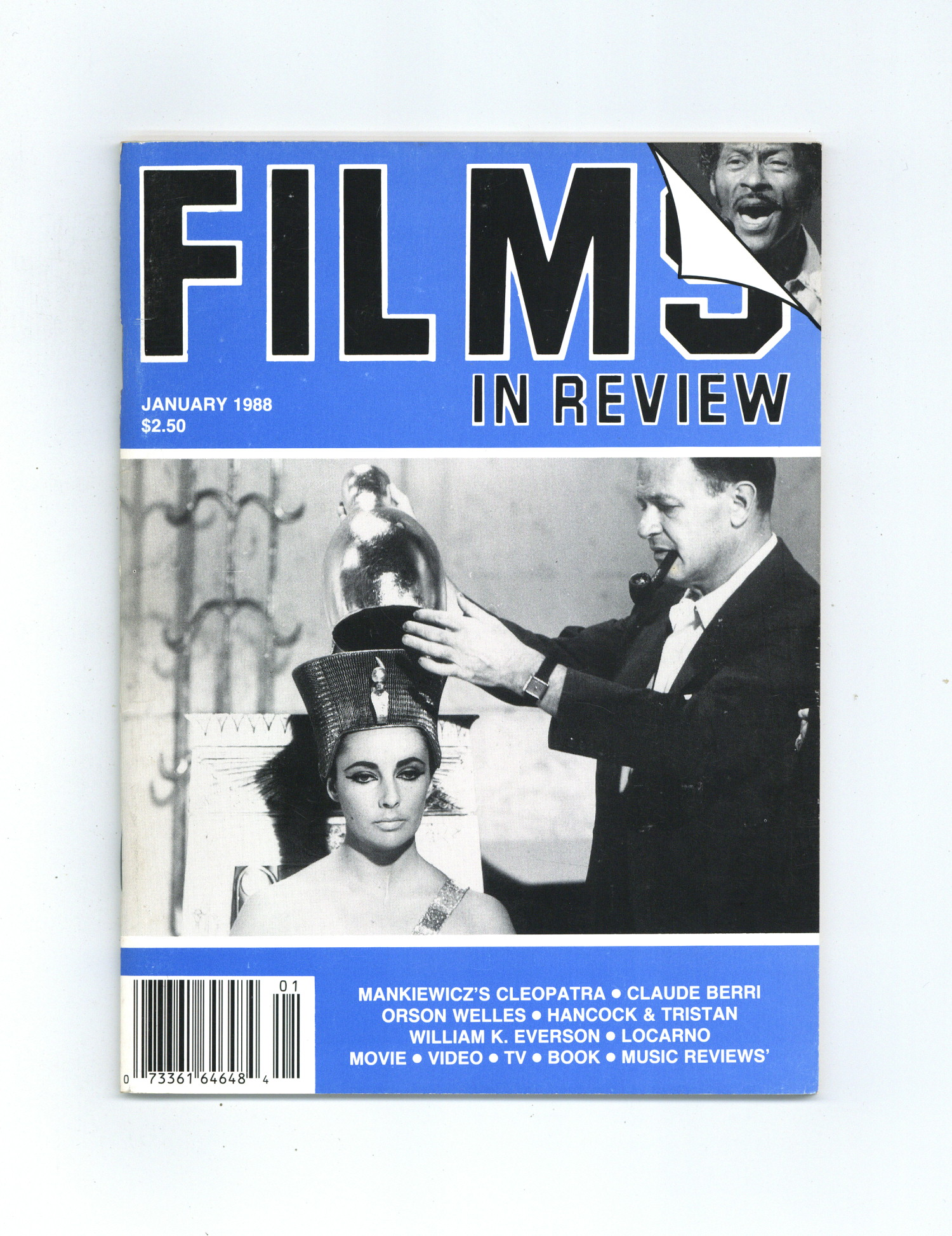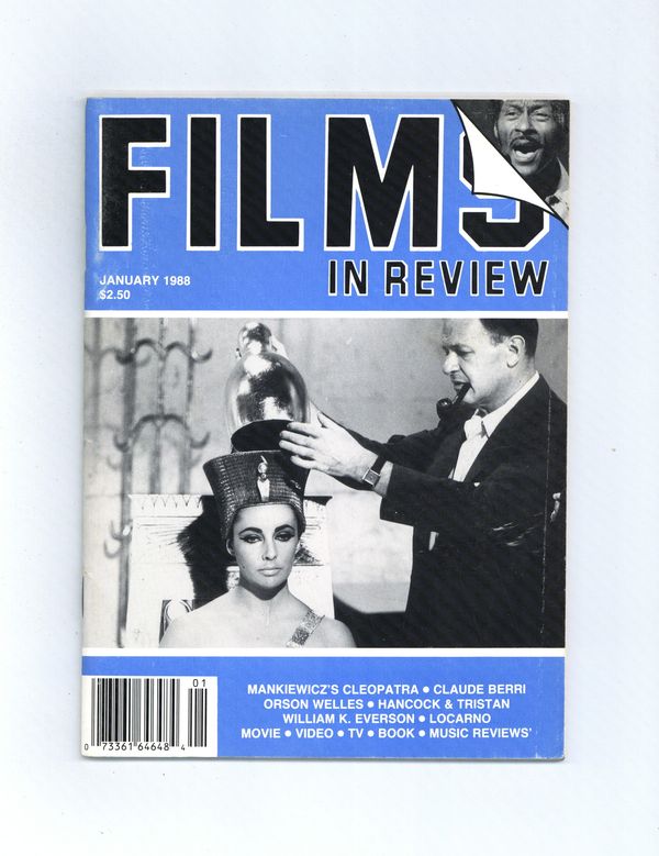 Published Jan 1988 by National Board of Review of Motion Pictures Inc..$17.00Film in Review is a publication of the National Board of Review of Motion Pictures, Inc, an independent, non-profit organization of public citizens founded in 1909 to represent the interests of the motion picture public. This National Board further assists the development of the motion picture as a source of entertainment, as education, and as art, by providing media for the expression of the public's opinion about films and their cultural and social effects. 5 1/2-in. x 7 1/2-in., 68 pages, B&W. Cover price $2.50.