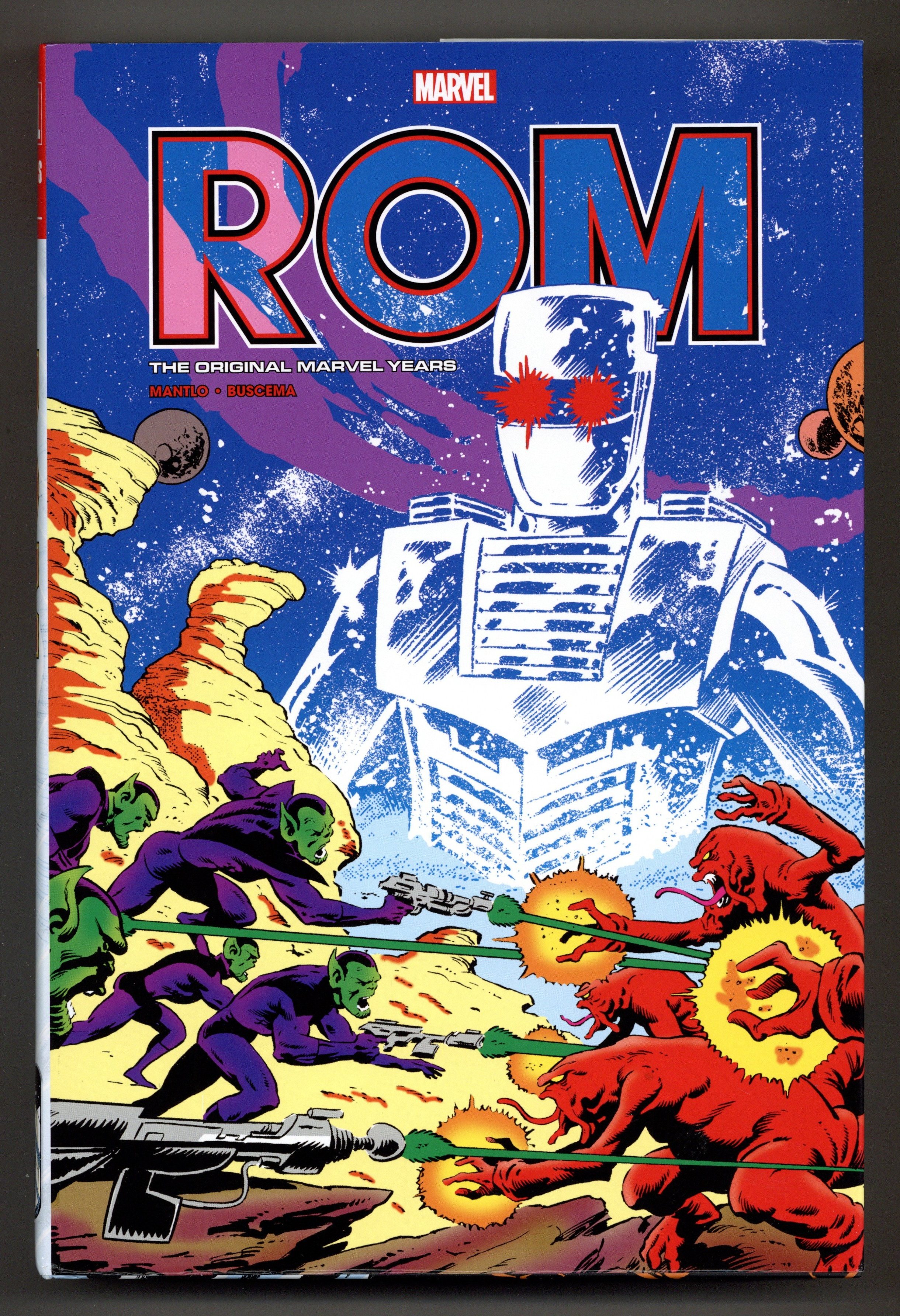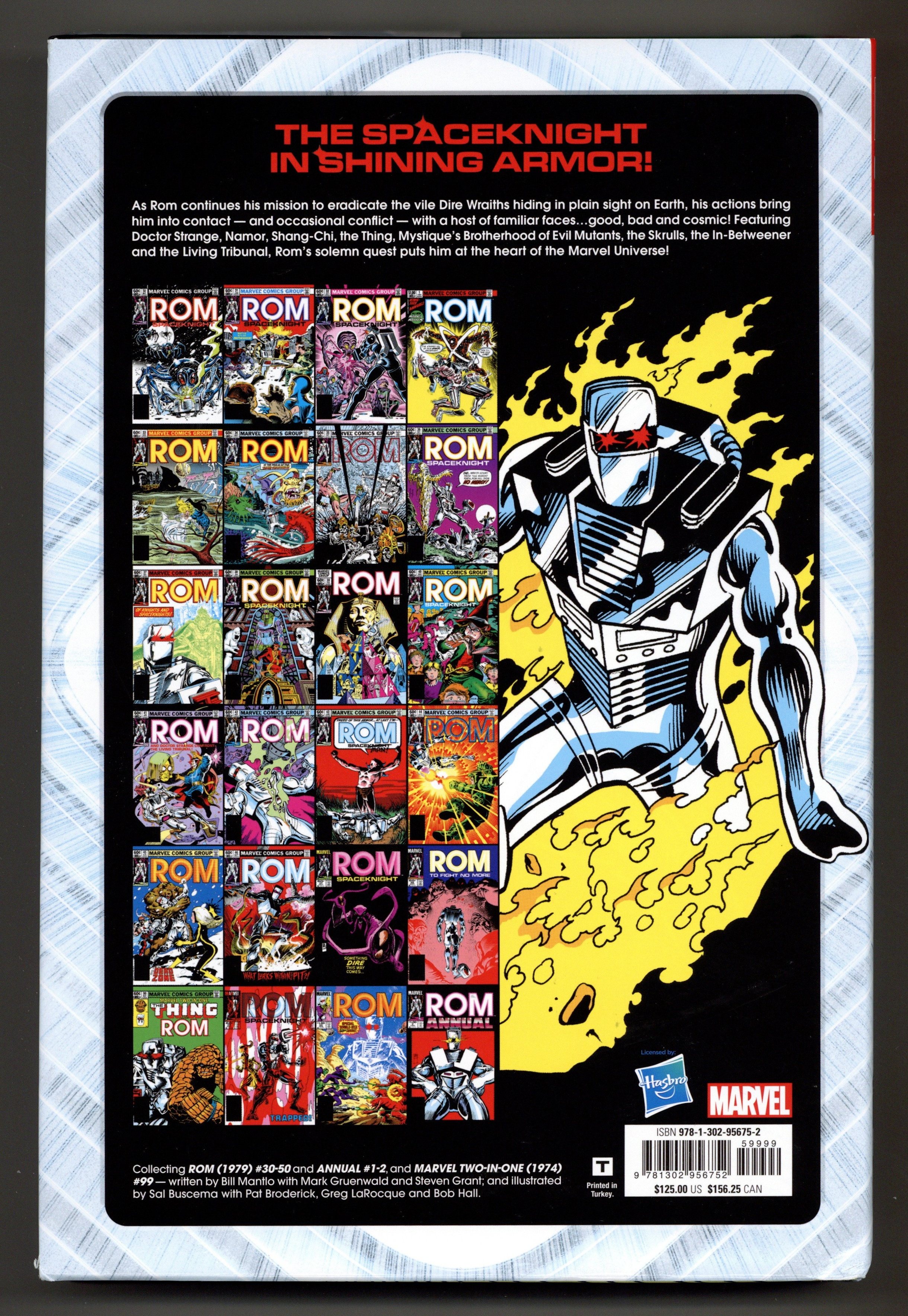 Volume 2 - 1st printing. Collects ROM (1979-1986 Marvel) #30-50, ROM (1979-1986 Marvel) Annual (1982) #1-2, Marvel Two-in-One (1974-1983 1st Series) #99. Written by Bill Mantlo, Mark Gruenwald, Steven Grant, and Bob Harris. Art by Sal Buscema, Pat Broderick, Bob Hall, Greg LaRocque, Bob Harris, Joe Sinnott, Mike Gustovich, Ian Akin, Brian Garvey, Danny Bulanadi, Kevin Dzuban, Rick Magyar, and Terry Austin. Cover by Mike Zeck. Back Cover by Sal Buscema, Ian Akin, and Brian Garvey. Continuing the complete collection of Rom's classic Marvel Universe adventures! Locked in an endless struggle with the Dire Wraiths, Rom's solemn quest to eradicate them from Earth brings him into conflict with the Metal Master and his army of spiders, Mystique and the Brotherhood of Evil Mutants, and more! The Spaceknight joins Namor to battle monsters of the deep, and Shang-Chi lends his deadly hands to thwart the Wraiths' black magic! Meanwhile, Rom's human friend Brandy Clark is transformed, and the impending arrival of the dreaded Dweller on the Threshold may spell doom for all! It's a cosmic epic featuring Doctor Strange, the In-Betweener, the Living Tribunal...and the human form of Rom?! Has he been freed from his armor at long last? All that, plus the Skrulls, the ever-lovin' Thing - and a tragedy that even Rom cannot withstand! Hardcover, 8 1/2-in. x 11-in., 704 pages, full color. Rated T Cover price $125.00.
