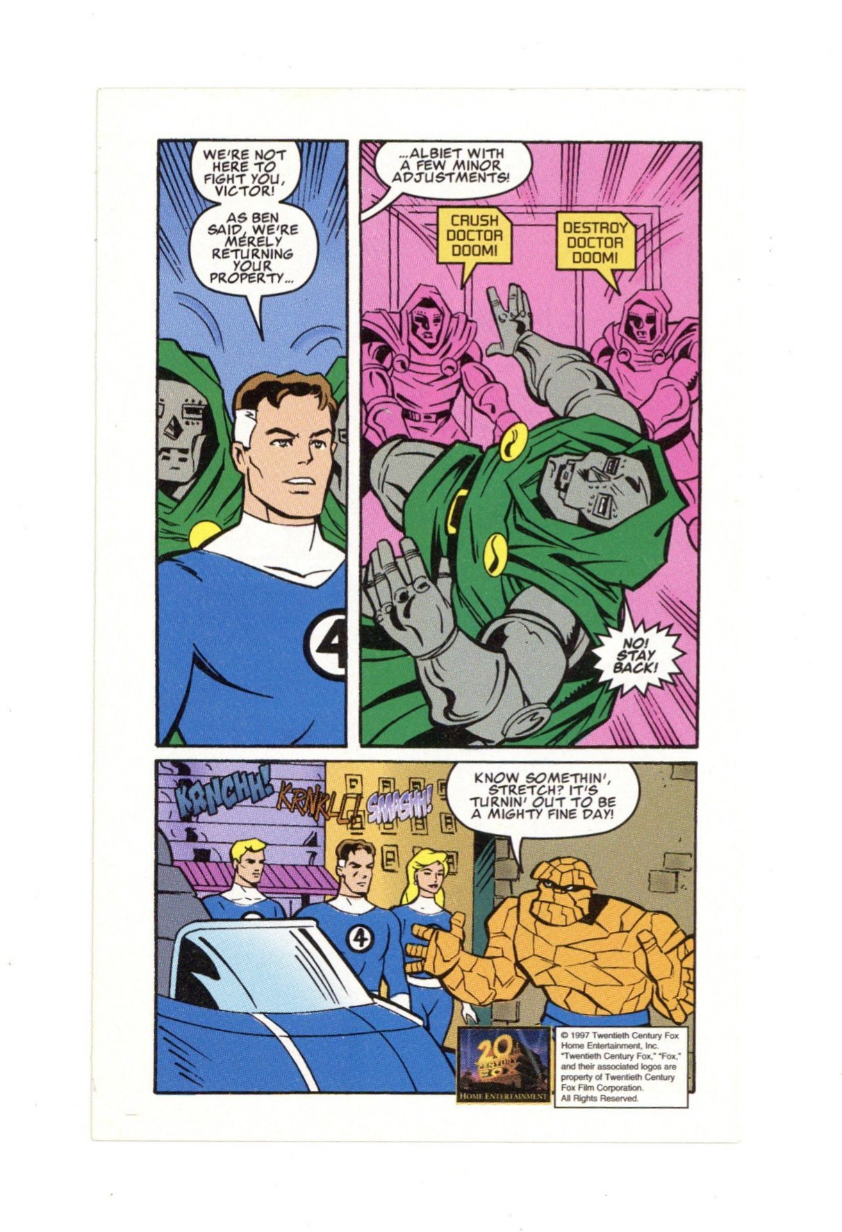 Fox Kids Video giveaway mini comic originally included with one of their VHS releases from the popular 1994 animated TV series. Cover by David Boller. "Day of Doom" features The Fantastic Four vs Doctor Doom. Written by Tom Brevoort. Art by David Boller. 3 1/8-in. x 5-in., full color, 8 pages.