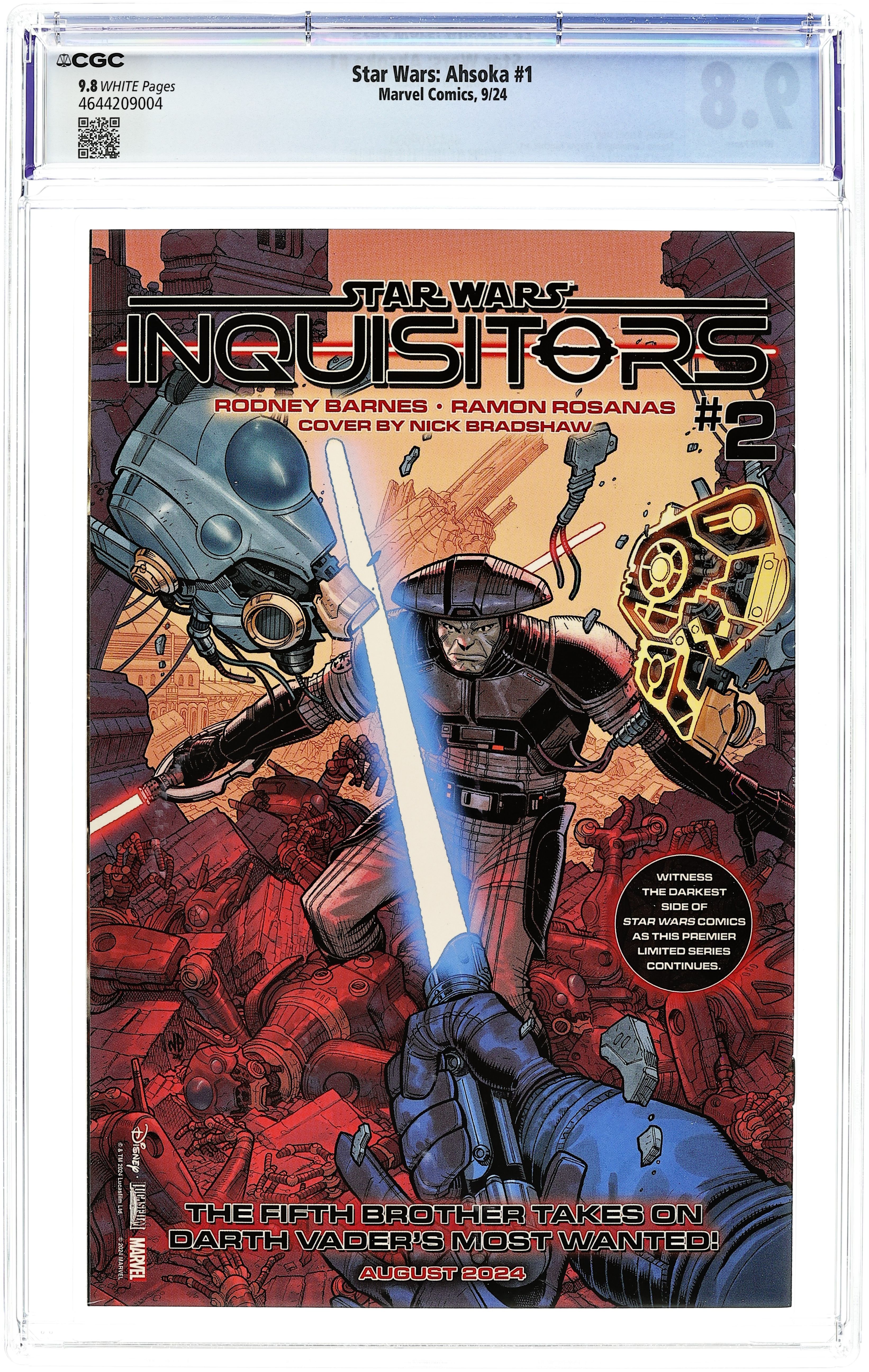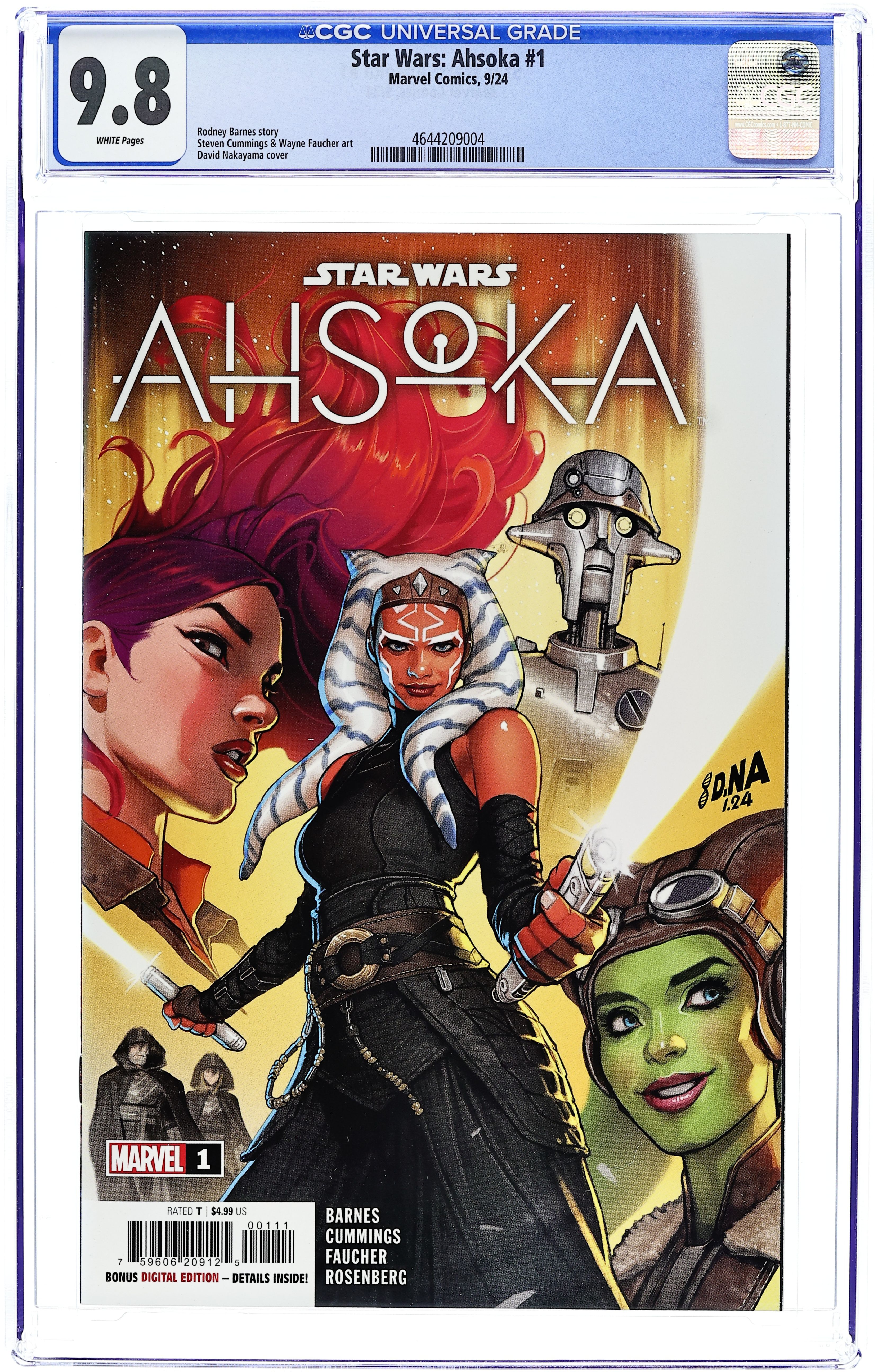 Written by Rodney Barnes. Art by Steven Cummings. Cover by David Nakayama. After the fall of THE EMPIRE, AHSOKA TANO stalks the galaxy for GRAND ADMIRAL THRAWN! A valuable prisoner escapes New Republic custody; a search for answers reunites two old friends. The villainous MORGAN ELSBETH returns along with two new mysterious Force users, BAYLAN SKOLL and his apprentice, SHIN HATI. Will the REBELS be able to track down their lost comrade, EZRA BRIDGER? 40 pages, full color. Rated T Cover price $4.99.
