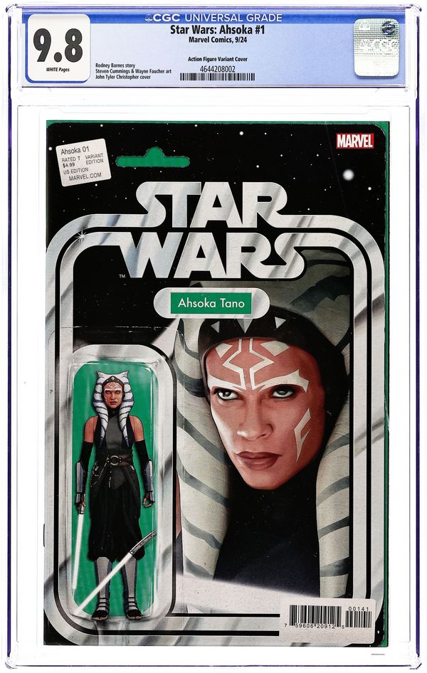 Written by Rodney Barnes. Art by Steven Cummings. Cover by John Tyler Christopher. After the fall of THE EMPIRE, AHSOKA TANO stalks the galaxy for GRAND ADMIRAL THRAWN! A valuable prisoner escapes New Republic custody; a search for answers reunites two old friends. The villainous MORGAN ELSBETH returns along with two new mysterious Force users, BAYLAN SKOLL and his apprentice, SHIN HATI. Will the REBELS be able to track down their lost comrade, EZRA BRIDGER? 40 pages, full color. Rated T Cover price $4.99.