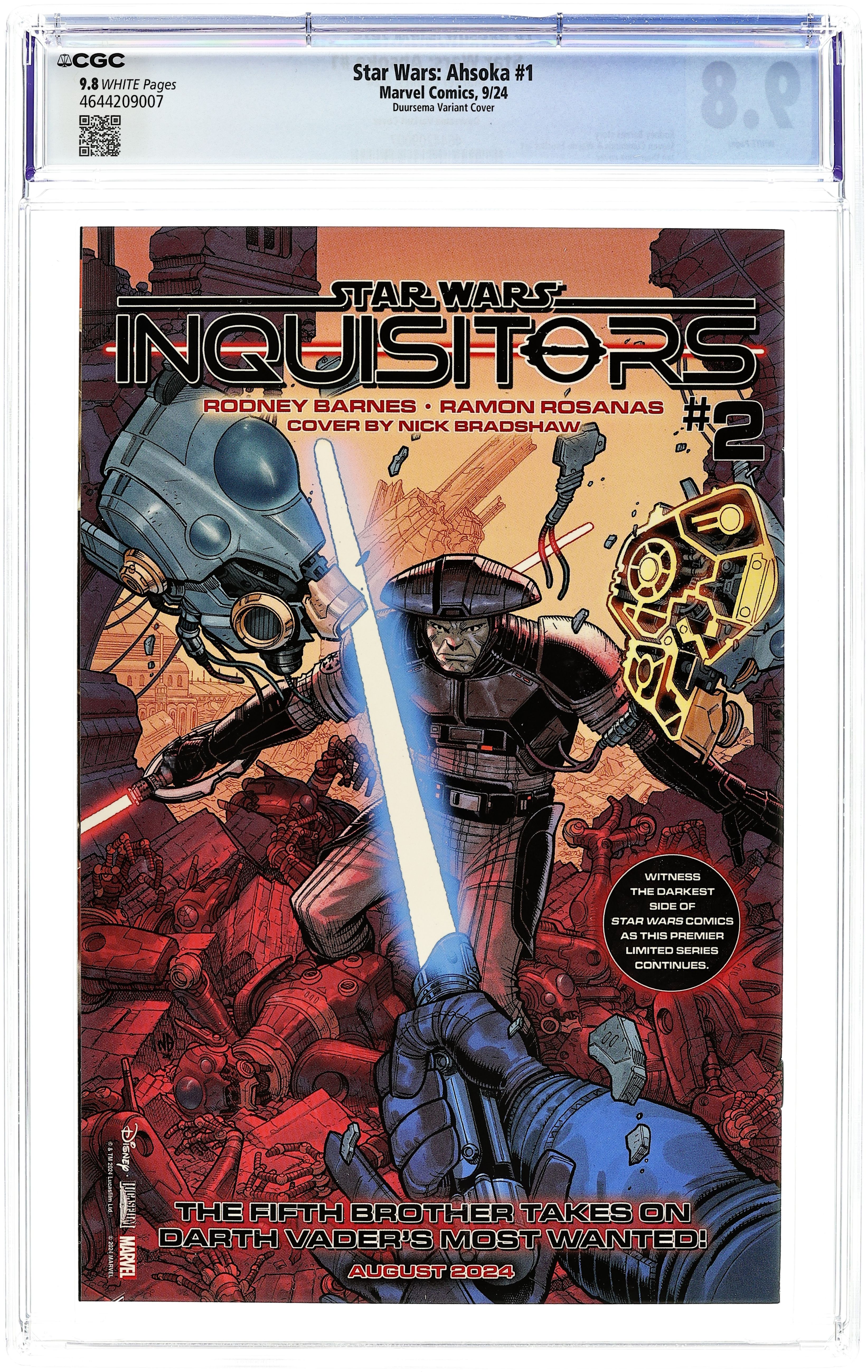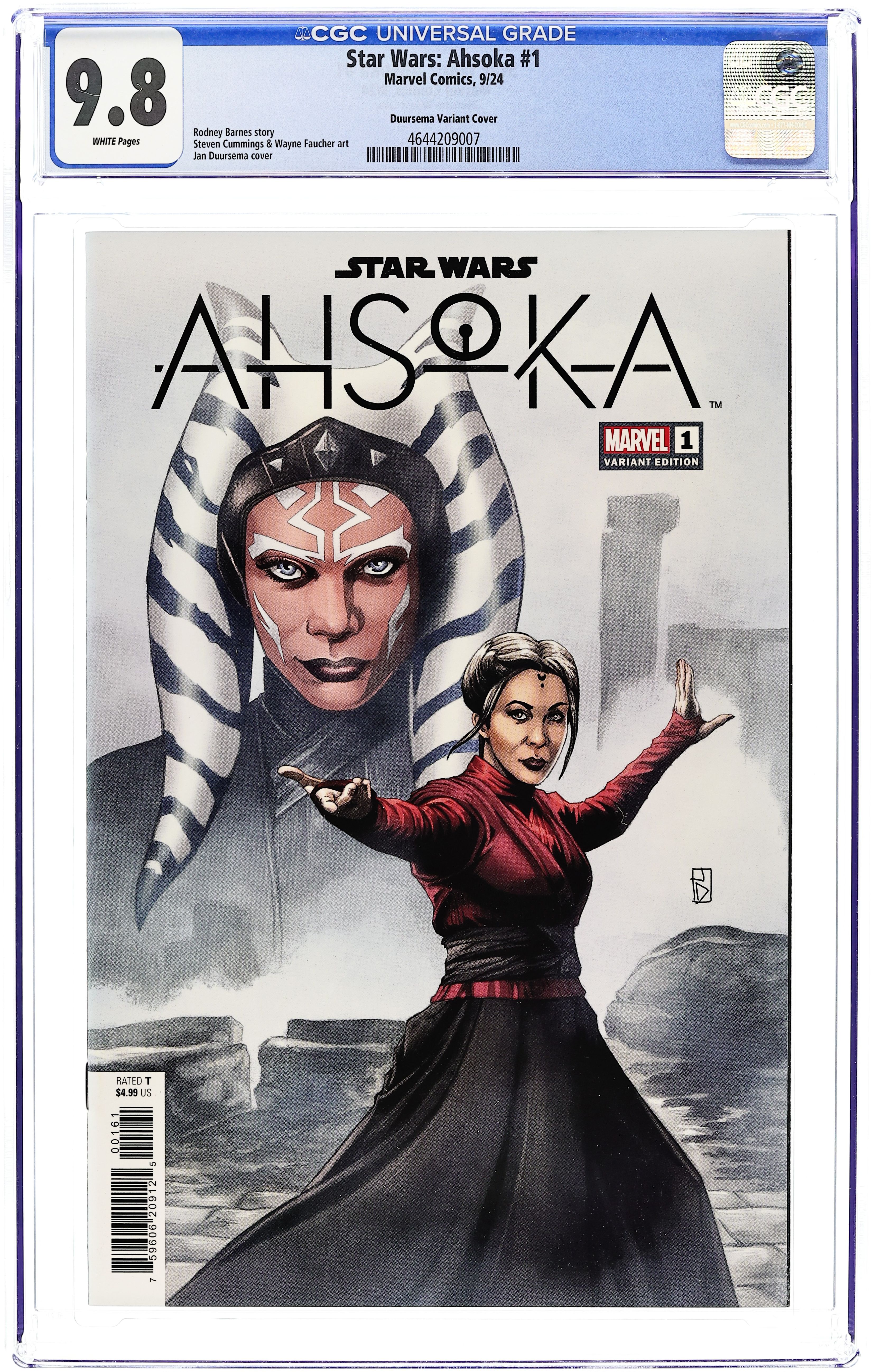 Written by Rodney Barnes. Art by Steven Cummings. Cover by Jan Duursema. After the fall of THE EMPIRE, AHSOKA TANO stalks the galaxy for GRAND ADMIRAL THRAWN! A valuable prisoner escapes New Republic custody; a search for answers reunites two old friends. The villainous MORGAN ELSBETH returns along with two new mysterious Force users, BAYLAN SKOLL and his apprentice, SHIN HATI. Will the REBELS be able to track down their lost comrade, EZRA BRIDGER? 40 pages, full color. Rated T Cover price $4.99.