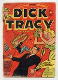 Cover art by Joe Simon (as Chester Gould). "Dick Tracy and the Case of the Pipe-Stem Killer," script and art by Joe Simon (splash panel) and Chester Gould; Acres O'Riley leaves the hospital in a glowing painter's drop cloth and searches for the man who stabbed her and stole her cab; Heels Beals, a midget con man, appears and sets up a sting; Tracy and Patton find Acres O'Riley but not until she has exacted her revenge on Brier, the man who stole her cab. "Deadlier Than the Male" activity page, art by Rudy Palais; Questions about infamous female killers in history and literature. "Dick Tracy Meets the Murderous Midget," script by Chester Gould, art by Joe Simon (splash panel) and Chester Gould; Heels Beals arrives to visit Acres O'Riley and chases Tracy and Patton from her hospital room; He then embarks on a confidence scheme to promote Acres as a celebrity and keep most of the money she makes; Tracy and Patton reveal the scheme to Acres, who leaves Beals fuming because his scheme was exposed. House ads for Dick Tracy Comics Monthly and Black Cat Mystery. "Hotel Homicide" text story. Minit Mystery Starring the Count; Boris and the Lieutenant investigate an apparent suicide. "Threat of Death" text story; Dave Holloway investigates a death threat against a prominent businessman. 36 Pages, Full Color. Cover price $0.10.