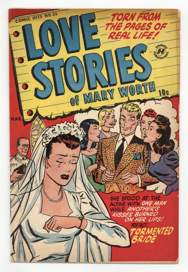 Stories and art by Allen Saunders and Ken Ernst. An anthology series from Harvey that served to introduce and test out other series. This issue features reprints of the classic soap-opera strip Mary Worth. Mary does her famed intervening when a bride-to-be is torn between two men, Herb and Chip. A history of the Mary Worth strip includes profiles of artist Ken Ernst and writer Allen Saunders, artist sketches, and Saunders discussing his work methods - everything the Mary Worth collector could ever want. Which Man Would You Marry?; Tormented Bride!; Introducing the Authors; Introducing Mary Worth and Us. 32 pages, Full Color. Cover price $0.10.