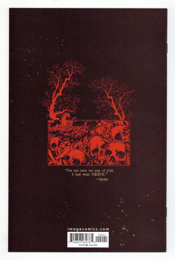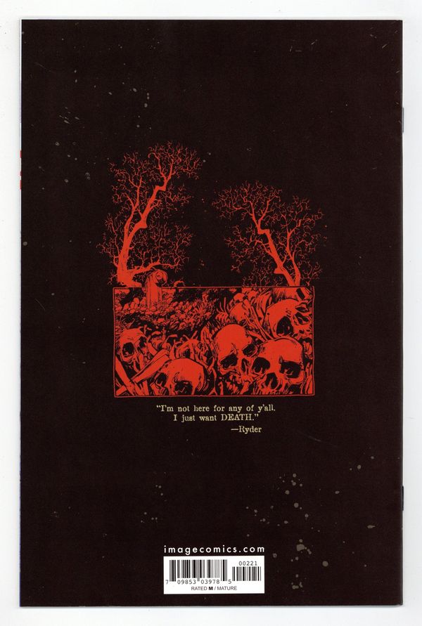 $17.50Limited 1 for 25 Retailer Incentive Variant Cover. Written by Skottie Young. Art by Jorge Corona. Cover by Skottie Young. Ryder seeks out Death in the city of Cypress, but quickly realizes that Death is on the hunt for her as well. She's a wanted woman and every bullet in this dark place is looking to put her in a grave. 28 pages, full color. Rated M Cover price $3.99.