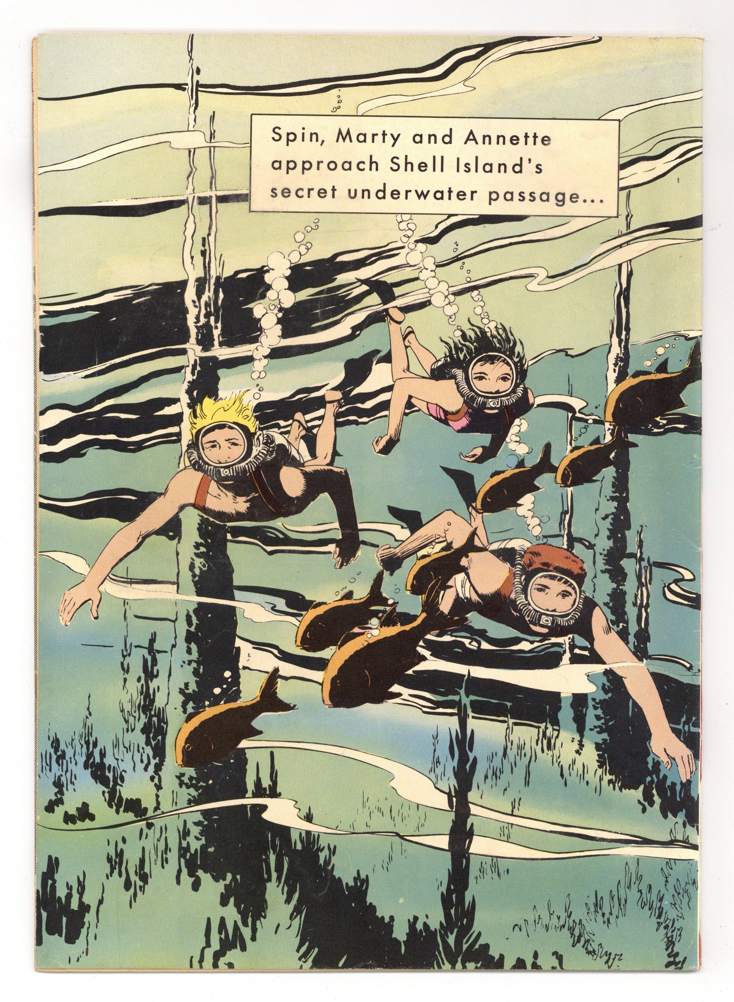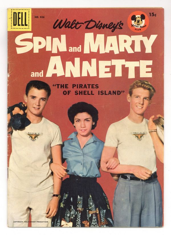 $200.0015ยข Cover Price Edition. Spin and Marty and Annette in "The Pirates of Shell Island" - Written by Eric Freiwald and Robert Schaefer. Art by Dan Spiegle. Photo Cover shows Spin Evans (Tim Considine), Annette Funicello and Marty Markham (David Stollery). Fourth of six Spin and Marty Four Color issues. 36 pages, full color. Cover price $0.15.