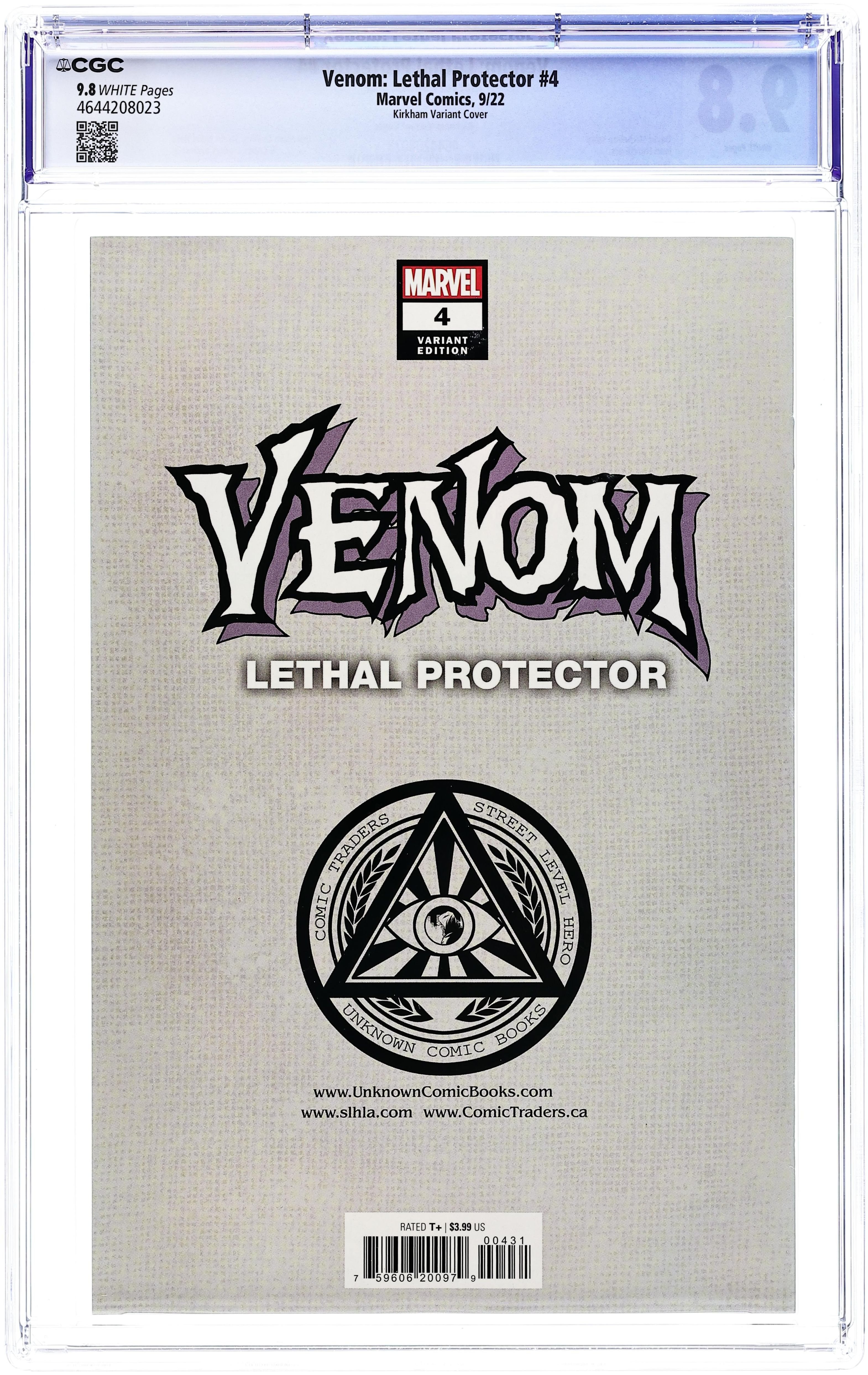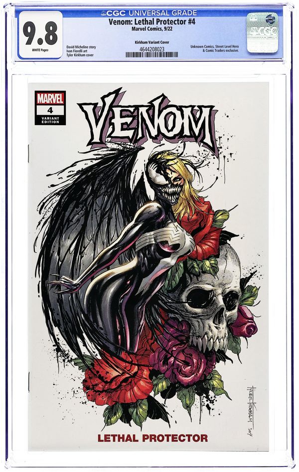 Comics Illuminati (Unknown Comics, Street Level Hero, and Comic Traders) Exclusive Cover by Tyler Kirkham. Written by David Michelinie. Art by Ivan Fiorelli. Eddie Brock has been through absolute hell. The love of his life has found another man, a dangerous cadre of criminals are after a bounty on Venom's head, and worst of all, his only ally, the VENOM SYMBIOTE, is in critical condition, its anatomy pushed to the absolute limit. And somehow, things are about to get much, MUCH worse! 28 pages, full color. Rated T+