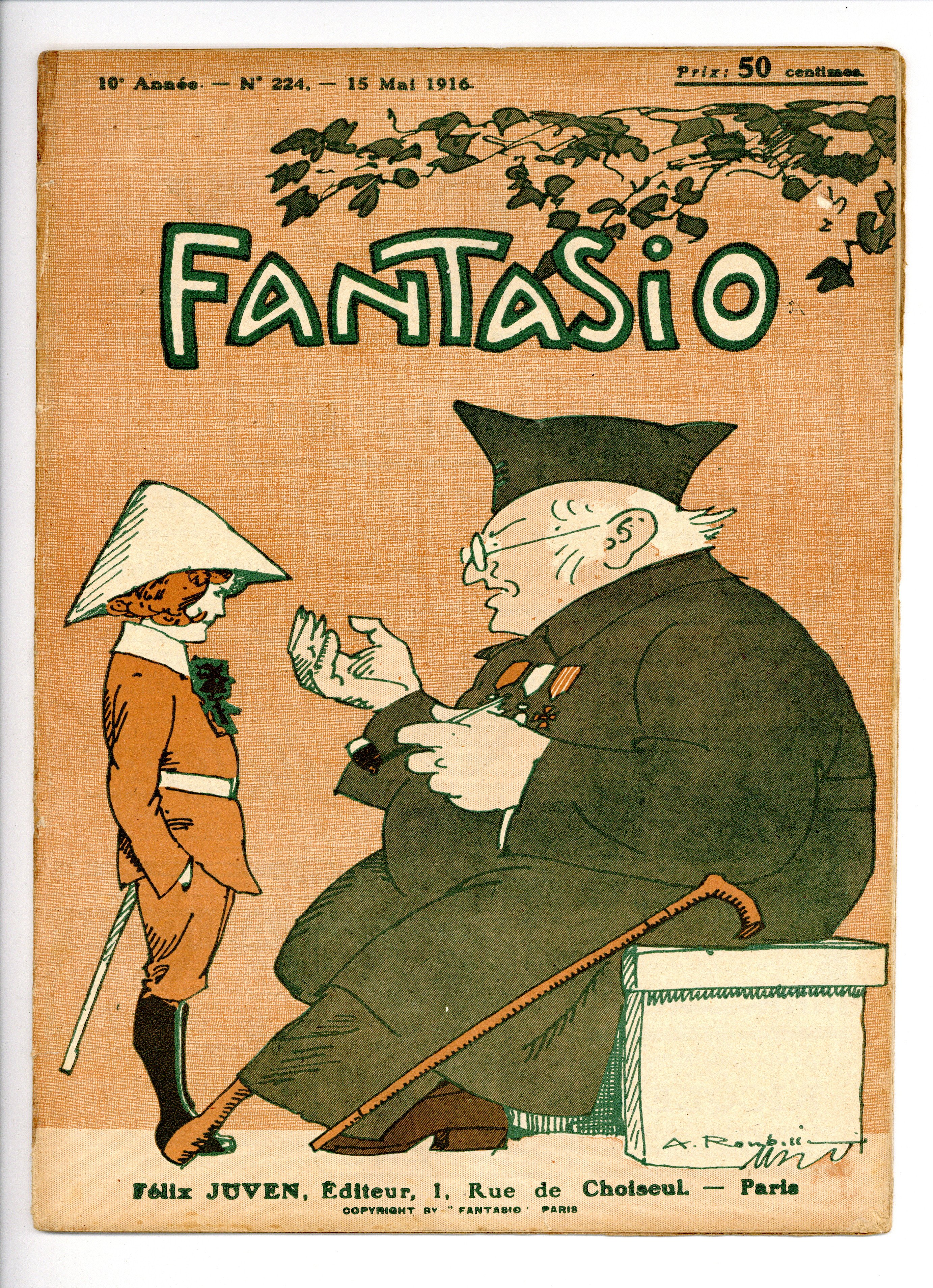 Bi-monthly satirical magazine produced in France, published and edited by Felix Juven. 8.5" x 11.5", 36 pages, PC/PB&W. NOTE: All text in French.