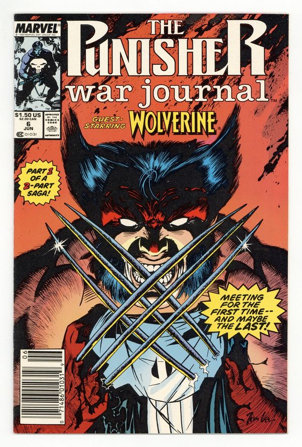 Newsstand Edition. Cover art by Jim Lee. On the Track of Unknown Animals, script by Carl Potts, pencils by Carl Potts and Jim Lee, inks by Jim Lee; at Microchip's behest, Punisher goes to Africa as part of a dinosaur hunting expedition; Punisher battles Wolverine in the African jungle. 36 pgs. $1.50. Cover price $1.50.