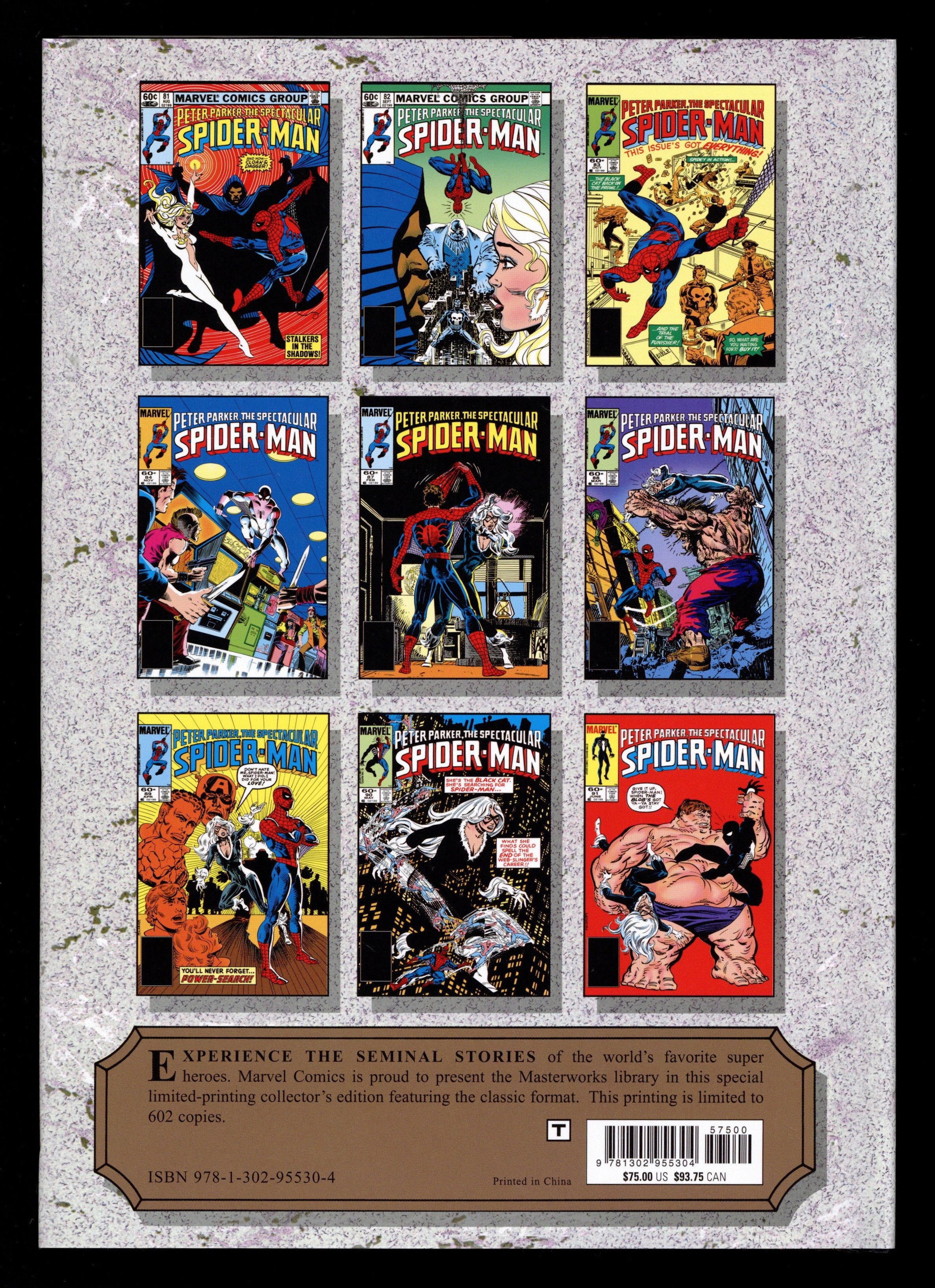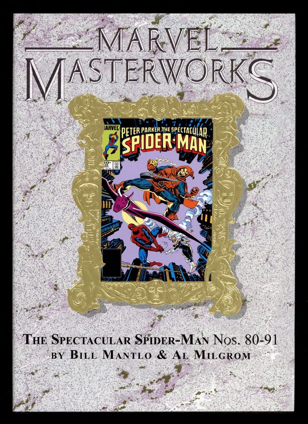 Volume 362- 1st printing. "The Spectacular Spider-Man: Book 7!" Collects [Peter Parker,] The Spectacular Spider-Man (1976-1998 1st Series) #80-91. Written by Bill Mantlo, Roger Stern, and Al Milgrom. Art by Al Milgrom, Ron Frenz, Greg LaRocque, Dave Simon, Fred Hembeck, Kevin Dzuban, Jim Mooney, and Joe Albelo. Cover by Al Milgrom. Introduction by Ralph Macchio. Spider-Man gets serious in his relationship with the Black Cat! Spider-Man's adventures have been larger than life, but they spring from the rotten roots of street crime with Uncle Ben's murder by a petty burglar. That gritty side of the criminal world takes the fore as the Kingpin tightens his grip on New York City. Spidey's not just faced with fighting villains, though. Cloak and Dagger complicate matters and the Punisher has his own form of justice in mind. Meanwhile, Mantlo and Milgrom explore the man with ink on his fingers and a story in this blood, J. Jonah Jameson, and uncover the origins of the Hobgoblin. Speaking of revelations, Peter Parker unmasks himself to the Black Cat-with unexpected results! Also featuring Black Cat's search for superpowers, Spidey's black costume and Fred Hembeck! Hardcover, 336 pages, full color. Rated T Cover price $75.00.