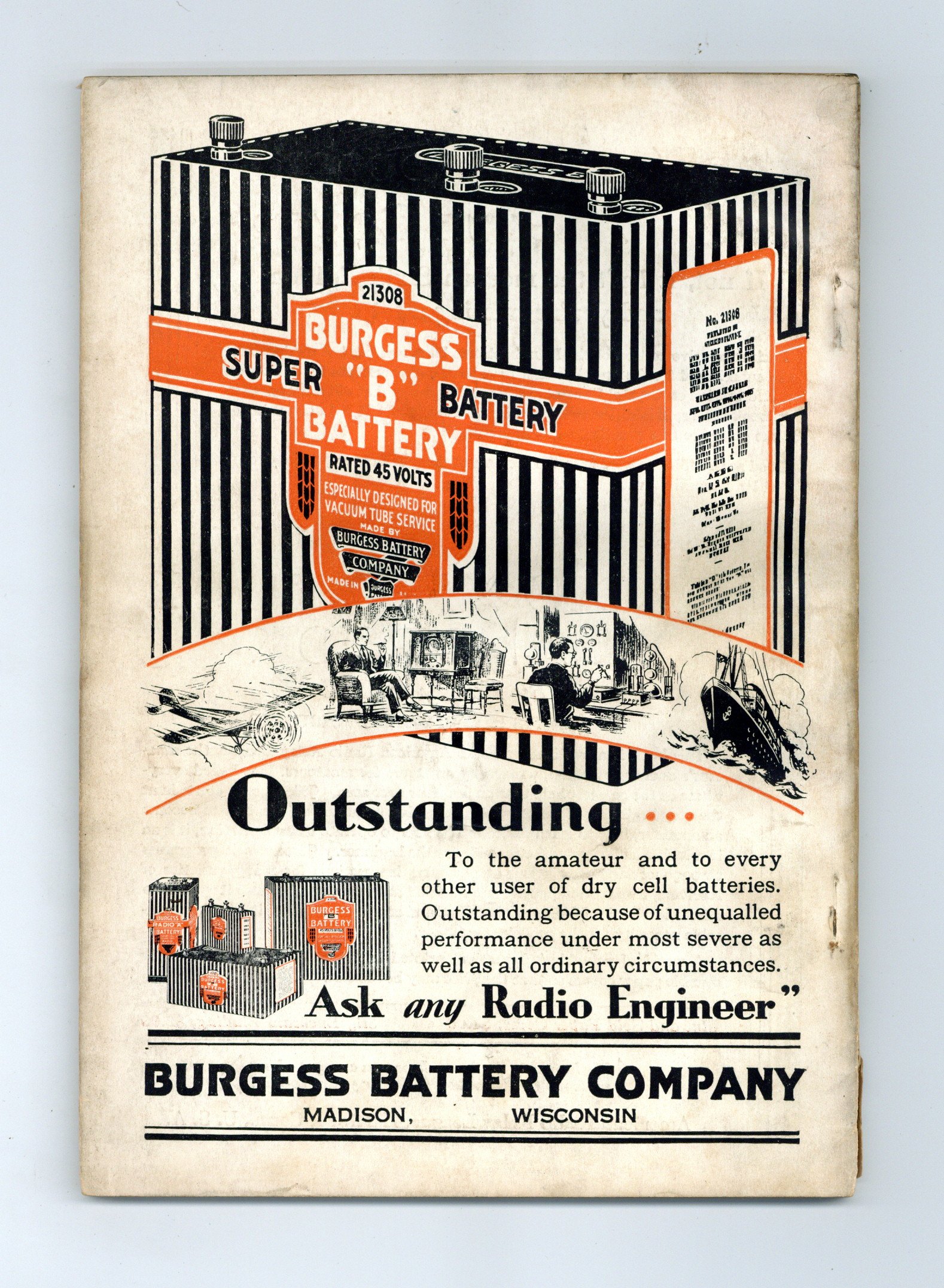 Published Apr 1930 by American Radio Relay League, Inc..$9.00- Front cover detached 50%. Back cover detached 20%. Water damage: Extensive. Staple rust: Moderate.