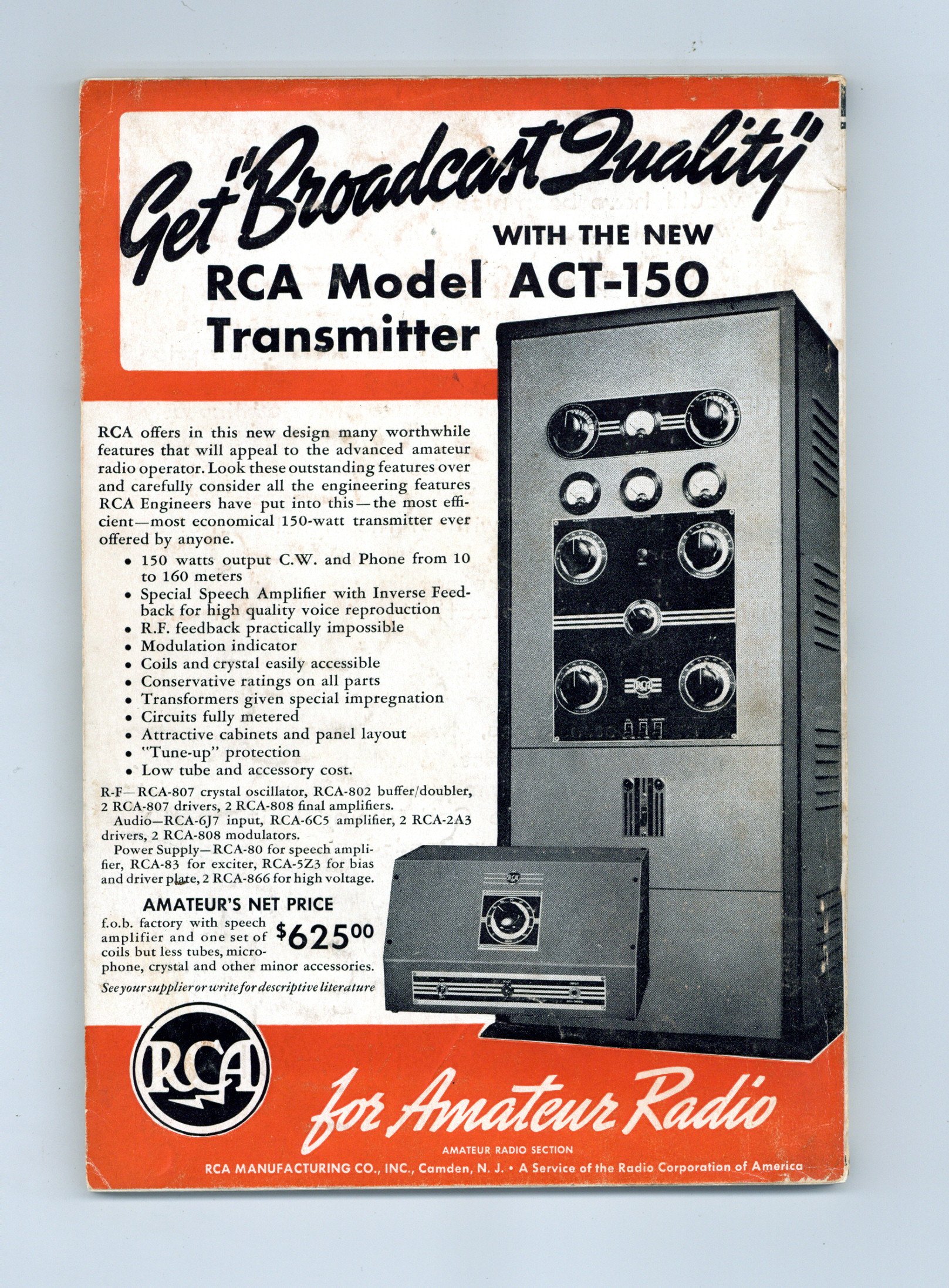 Published Nov 1937 by American Radio Relay League, Inc..$18.00- Front cover detached 5%. Back cover detached 5%. Water damage: Moderate. Staple rust: Moderate.