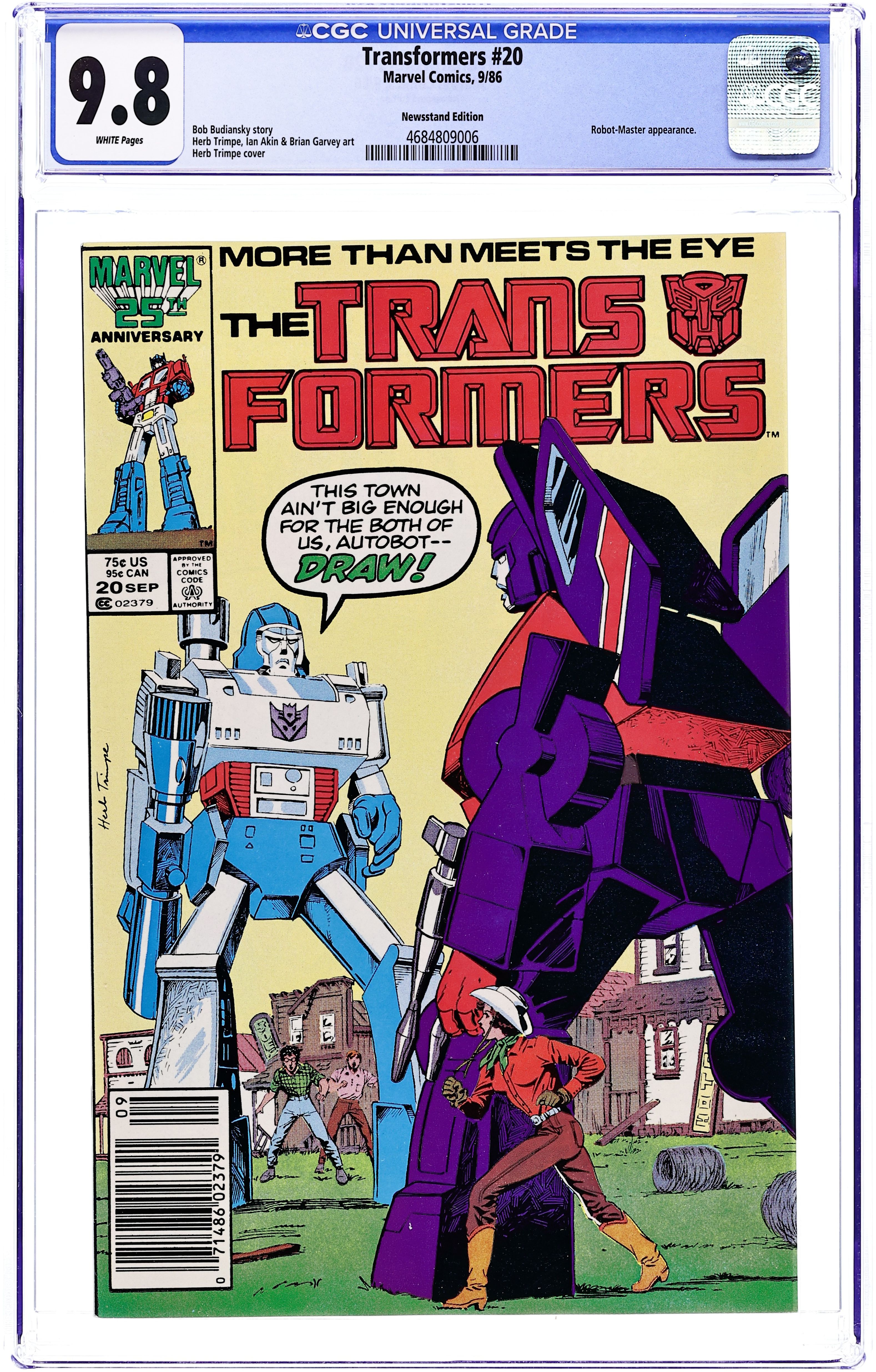 First Printing. Newsstand Edition. Script by Bob Budiansky and art by Herb Trimpe & Ian Akins & Brian Garvey. Cover by Herb Trimpe. Skids has had enough of being a warrior and a hero. So when he is found and repaired by a human, Skids decides that he is perfectly content to be that human's car in "Showdown." Cover price $0.75.
