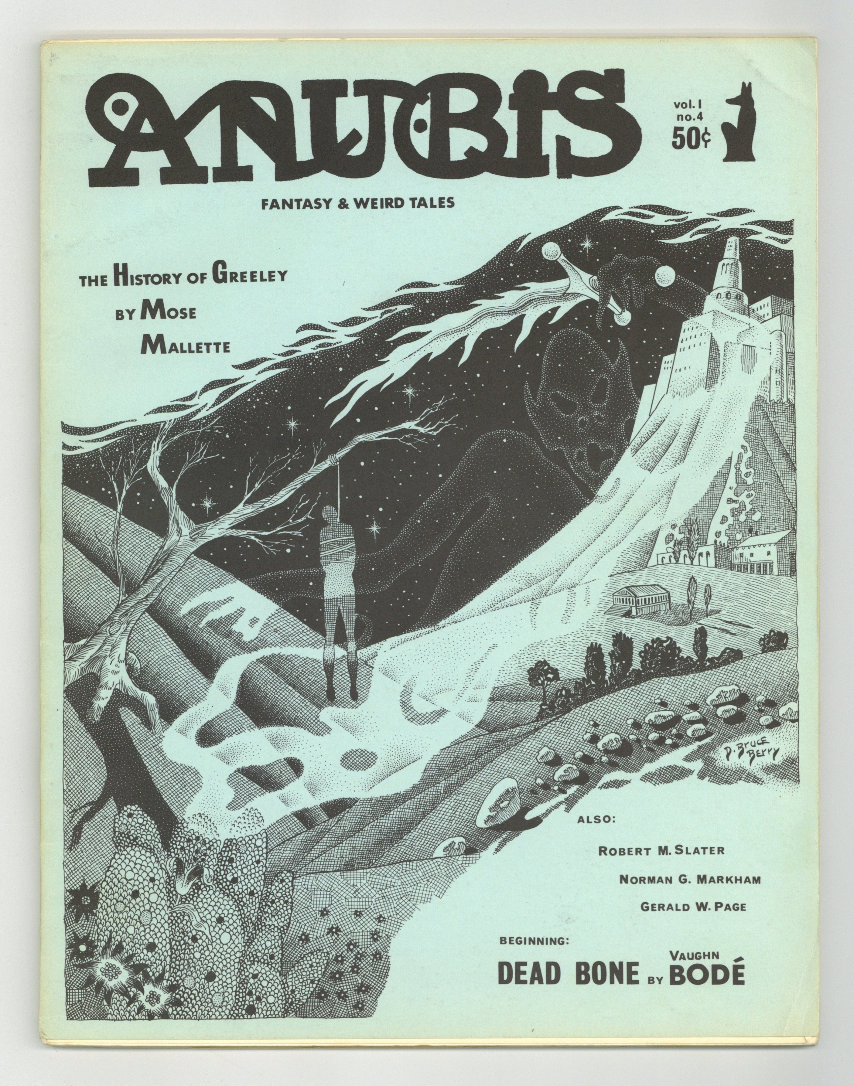 Published Sep 1968 by Golden Goblin Press.$21.00Autumn, 1968 - Volume 1, Issue 4. Fantasy and Sci-Fi magazine featuring fiction, articles, poetry and artwork. Cover by D. Bruce Berry. Includes works from Mose Mallette, Philip Canning, Robert M. Slater, Bennett Weinberg, Carleton Grindle, Norman G. Markham, Roger Wilson Cook, Emily Glen, Ronald J. Willis, Vaughn Bode, Gerald W. Page, Mercer M. McDowell, Doublas Kames, and L. E. Preston. 8-1/2" x 11", 64 pages, B&W. Cover price $0.50.