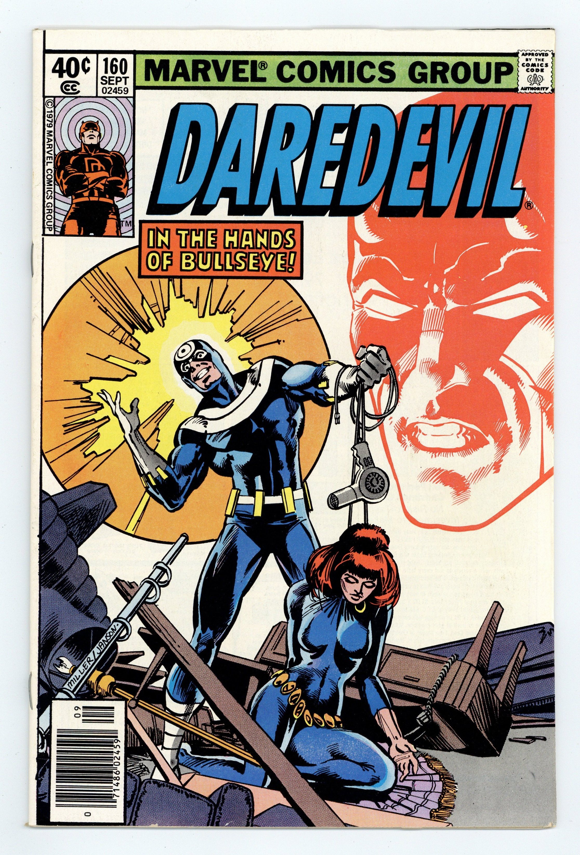 Newsstand Edition. Cover pencils by Frank Miller, inks by Klaus Janson. In the Hands of Bullseye, script by Roger McKenzie, pencils by Frank Miller, inks by Klaus Janson; Matt and Heather visit her father's grave; Bullseye captures Black Widow to flush DD out; appearances by Peter Parker and Mary Jane Watson; cameo by J. Jonah Jameson. 32 pgs. Cover price $0.40. Cover price $0.40.