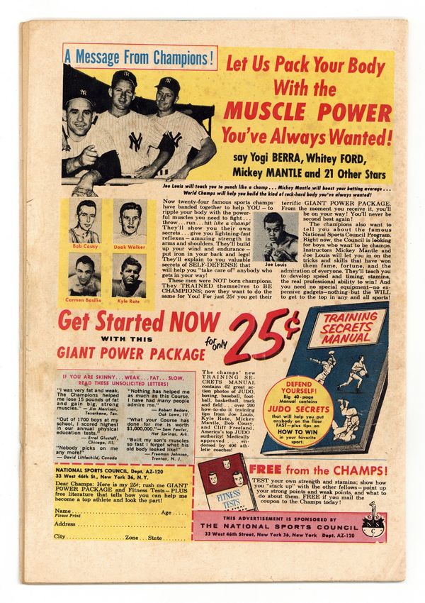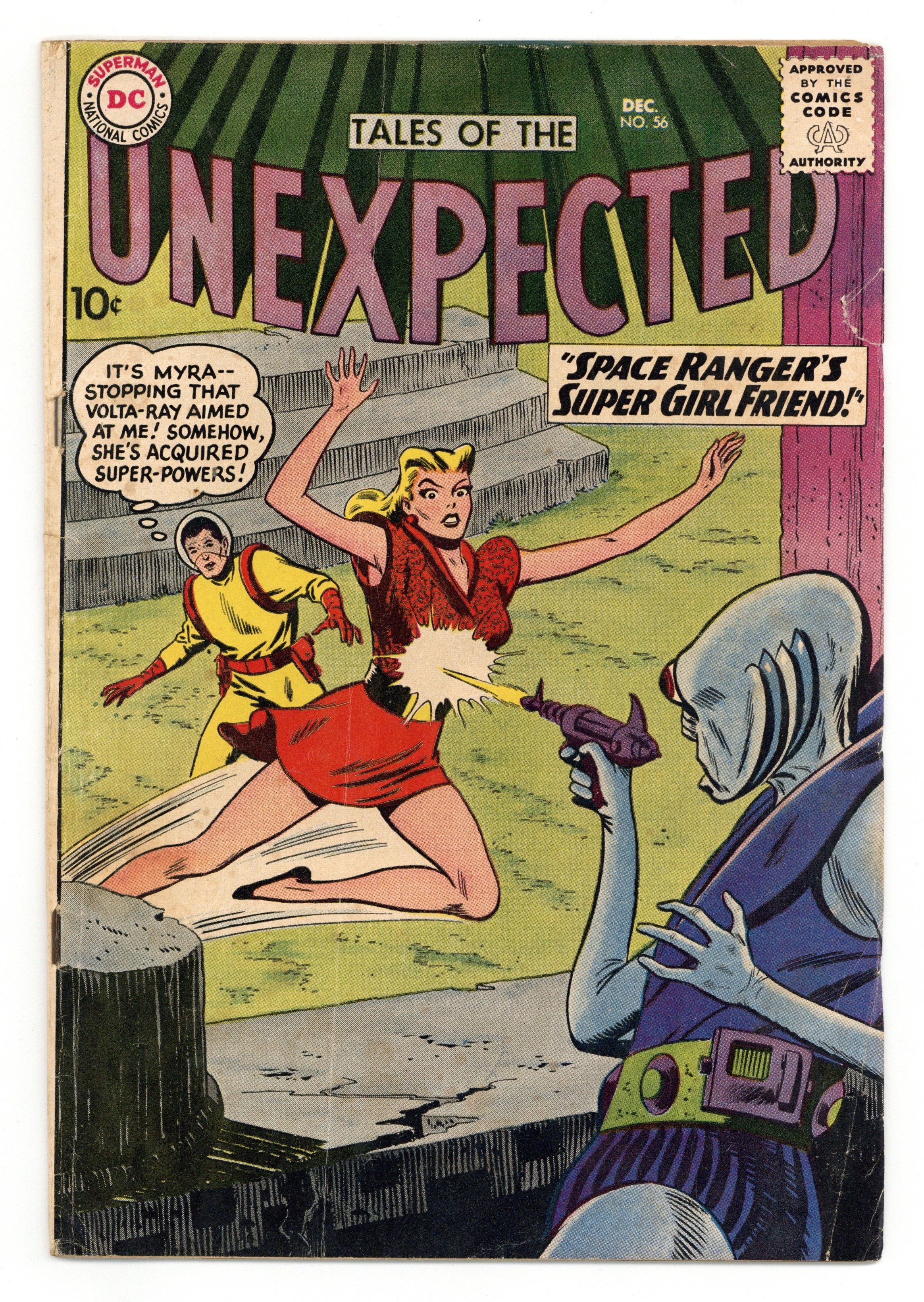 Cover art by Bob Brown. Invaders From Earth, art by George Roussos. Dr. Floogle humor page by Henry Boltinoff. Children of Tomorrow! public service announcement, script by Jack Schiff, art by Bernard Baily. The Man of 1,000 Alien Faces starring the Human Chameleon, art by Howard Purcell. House ad for Superman Annual #2. Destination Infinity text story. Facts about astronomer Edward J. Pickering. Space Ranger's Super Girl Friend, art by Bob Brown; Space Ranger and his team go the planet Ular to rescue the kidnapped King Doro; A freak accident gives Myra temporary super-powers, which helps wrap up the case. Moolah the Mystic humor page by Henry Boltinoff. 36 Pages, Full Color. Cover price $0.10.