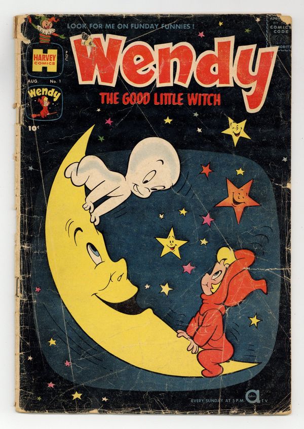 Cover has Wendy and Casper. Stories by unknown. Art by unknown. Wendy stars in "Toot and Tooter" and "The Wand Tree," plus three untitled 1-pagers. Also in this issue: Nightmare in "The Ghost Rider"; Spooky in "Butter Ball"; and 1-page text stories "Jest for Fun" and "The Nutty Squirrel"! Characters in this issue: Wendy; Thelma; Zelma; Velma; Nightmare; Spooky; Poil. 36 pages, full color. Cover price $0.10.