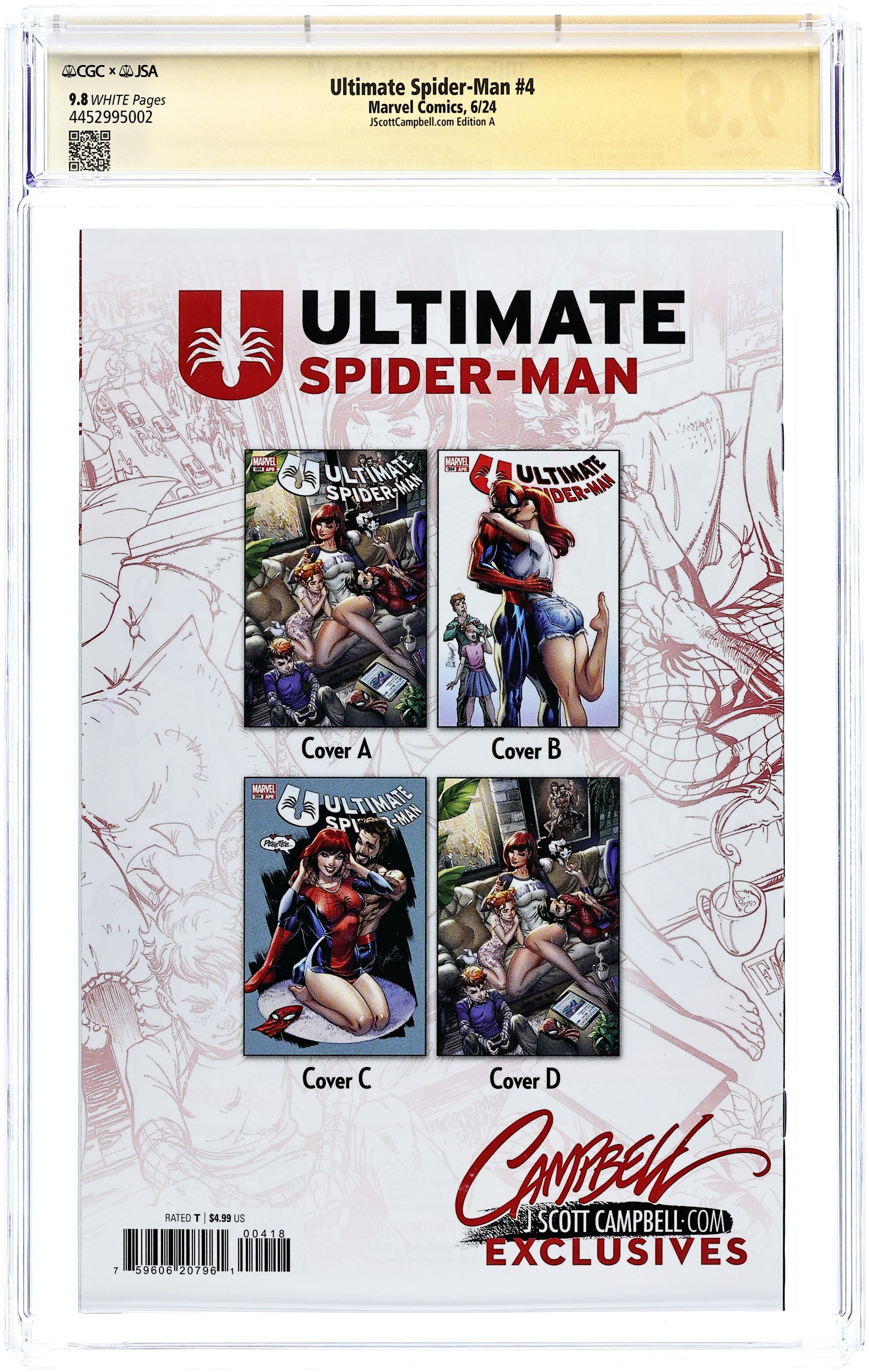JScottCampbell.com Exclusive Variant Cover by J. Scott Campbell. Written by Jonathan Hickman. Art by David Messina. WHO IS THE GREEN GOBLIN? Peter Parker's secret life starts fraying the edges of his personal life! J. Jonah Jameson and Ben Parker's pursuit of truth - or, at least, the news - stirs unrest with the world at large⦠And now that Spider-Man may not have to operate alone, the real work of rebuilding this corrupt world can begin! 32 pages, full color. Rated T