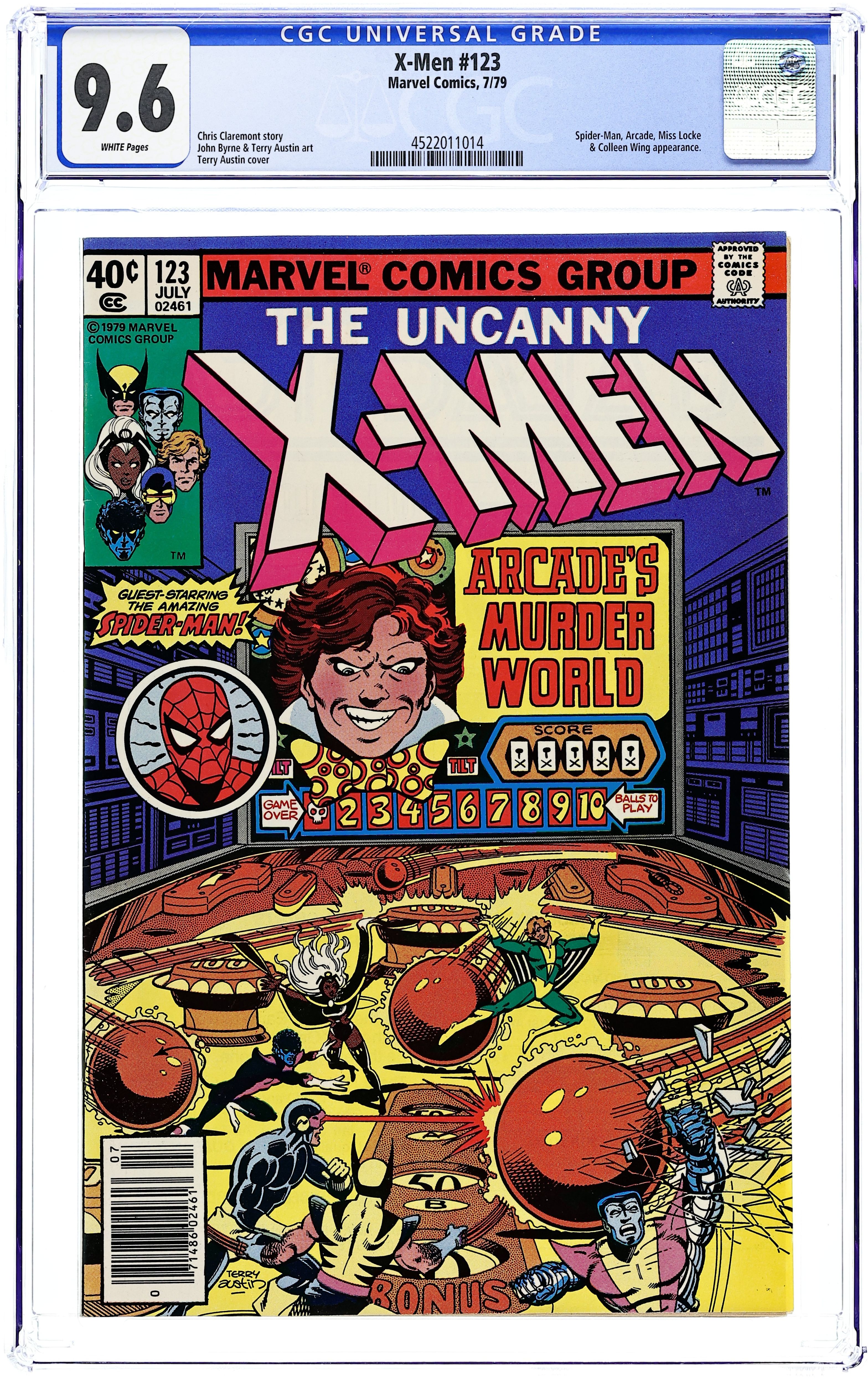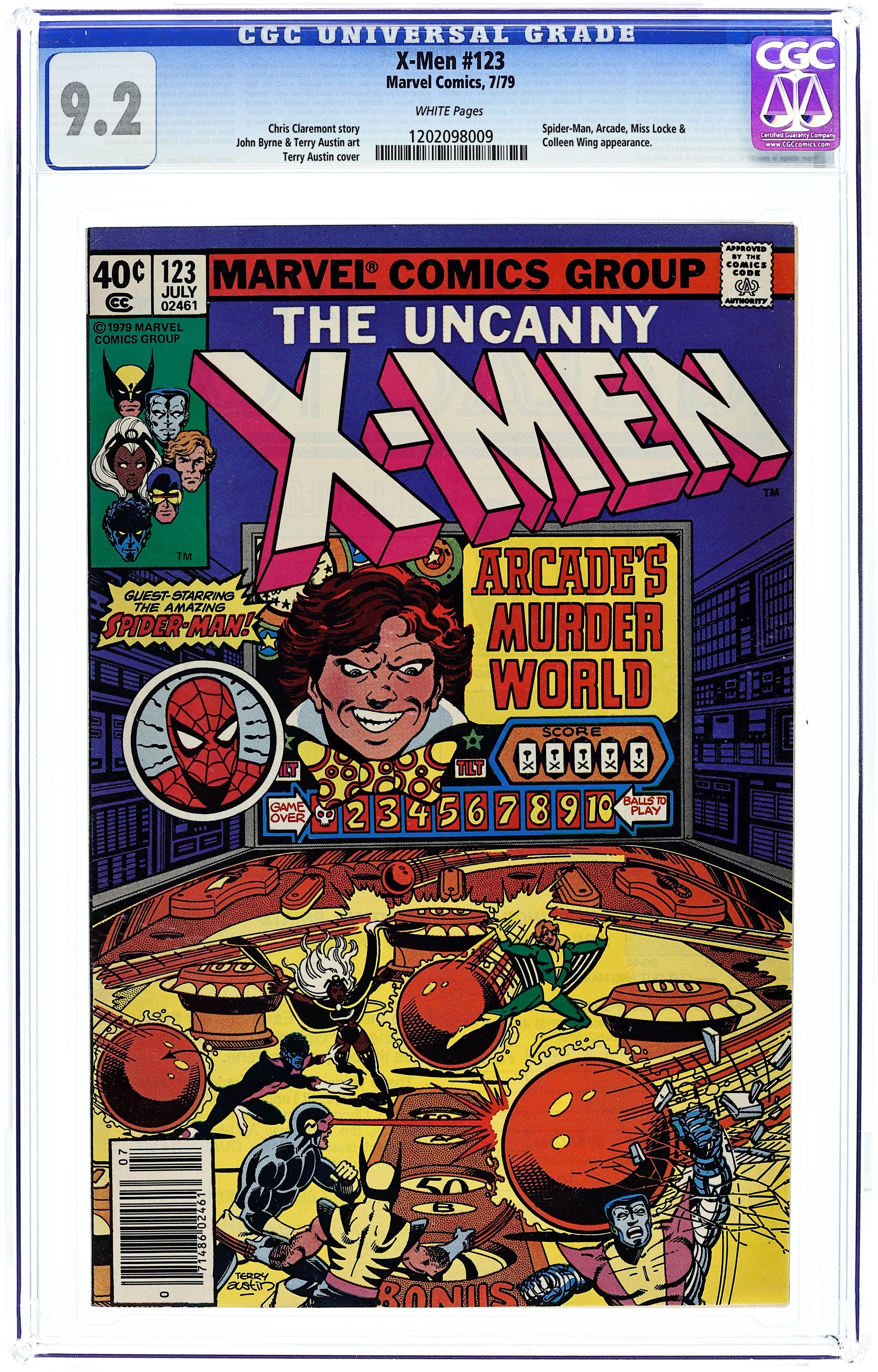 Ends Dec 8 9:52 PM CST Bid History 4 bids Current Bid $17 Your Secret Max Bid If you'd like to bid, please log in or register. Newsstand Edition. "Listen - Stop Me if You've Heard It - But this One will Kill You!" Part 1 of 2. Guest-starring Spider-Man and Colleen Wing. Story by Chris Claremont and John Byrne. Art by John Byrne and Terry Austin. Cover by Terry Austin. One by one the X-Men are abducted. Now they must fight for their lives if they hope to survive the sinister creature of the diabolical Arcade - Murder World! NOTE: Uncanny X-Men #123 and #142 are rare commodities in the realm of comics as they are two of the very few covers where inker extraordinaire Terry Austin actually does the pencils as well. - Odinson Lone Star Comics Archivist. 36 pgs. Cover price $0.40.