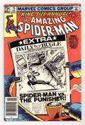 Tags: Spider-Man$21.00Newsstand Edition. "Spider-Man: Threat or Menace?" Guest-starring the Punisher. Script by Denny O'Neil. Art by Frank Miller (breakdowns) and Klaus Janson (finishes). Cover by Frank Miller and Klaus Janson. The dynamic art tandem that took the Daredevil series to new heights in the early 1980's teams up to bring Spider-Man and the Punisher together again! But this time the web-slinger and the gun-toting vigilante are not facing the likes of Jigsaw or the Hitman! Their adversary is a certain six-armed super-villain...planning nothing less than the murder of five million people! The Punisher takes the first shot at Dr. Octopus in the city morgue! And later on the wondrous wall-crawler takes the last one at the Daily Bugle! Can Spidey get the story to press before Doc Ock? An excellent annual! Second feature: "Just How Strong Is...Spider-Man?" Script by Mark Gruenwald. Art by Mark Gruenwald (layouts) and Bob Layton (finishes). The heroes of the Marvel Universe are ranked in order of their physical strength. The first tier consists of the Hulk, Hercules, Thor, Wonder Man, and Iron Man. The Thing and the Sub-Mariner headline the second tier. Spider-Man is in the third tier. This may be the first such "power ranking" attempted...thus making it a landmark backup feature. Third feature: "Peter Parker's Apartment!" Script by Roger Stern. Art by Marie Severin and Terry Austin. One-page illustration of Peter's Chelsea apartment correcting the errors in Amazing Spider-Man Annual 13. Fourth feature: "A Gallery of Spider-Man's Most Famous Foes!" Script by Roger Stern. Art by Keith Pollard, Greg LaRocque, and Frank Giacoia. 4 pages of pin-ups featuring the Man-Wolf, Jackal, Punisher, and Tarantula. (Notes: Dr. Octopus previously appeared in Captain America 259. The Punisher appears next in Daredevil 181 & 182. This story was reprinted in the trade paperback The Sensational Spider-Man (1988); and also in the (1994) Complete Frank Miller Spider-Man.) 52 pages. Cover price $0.75.