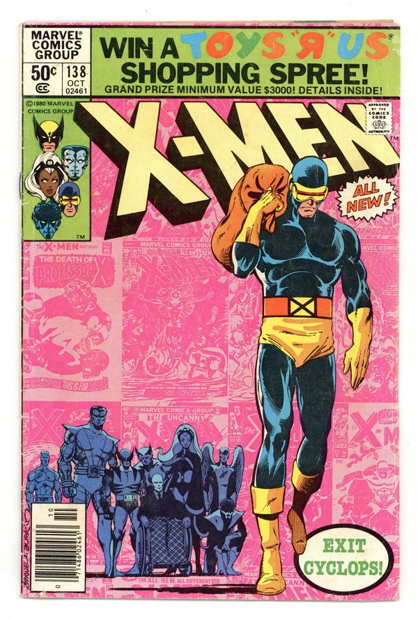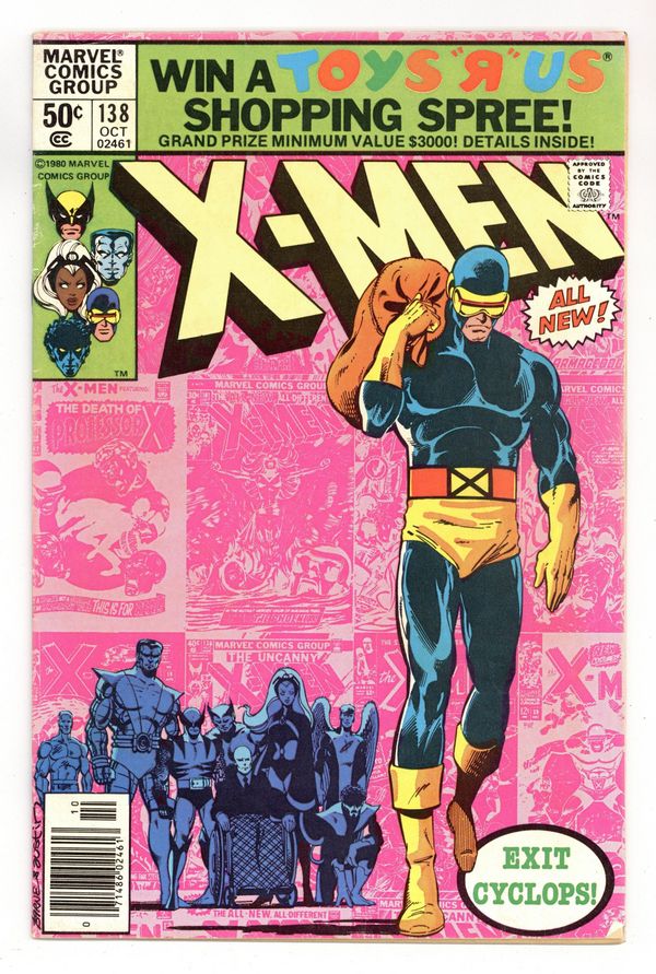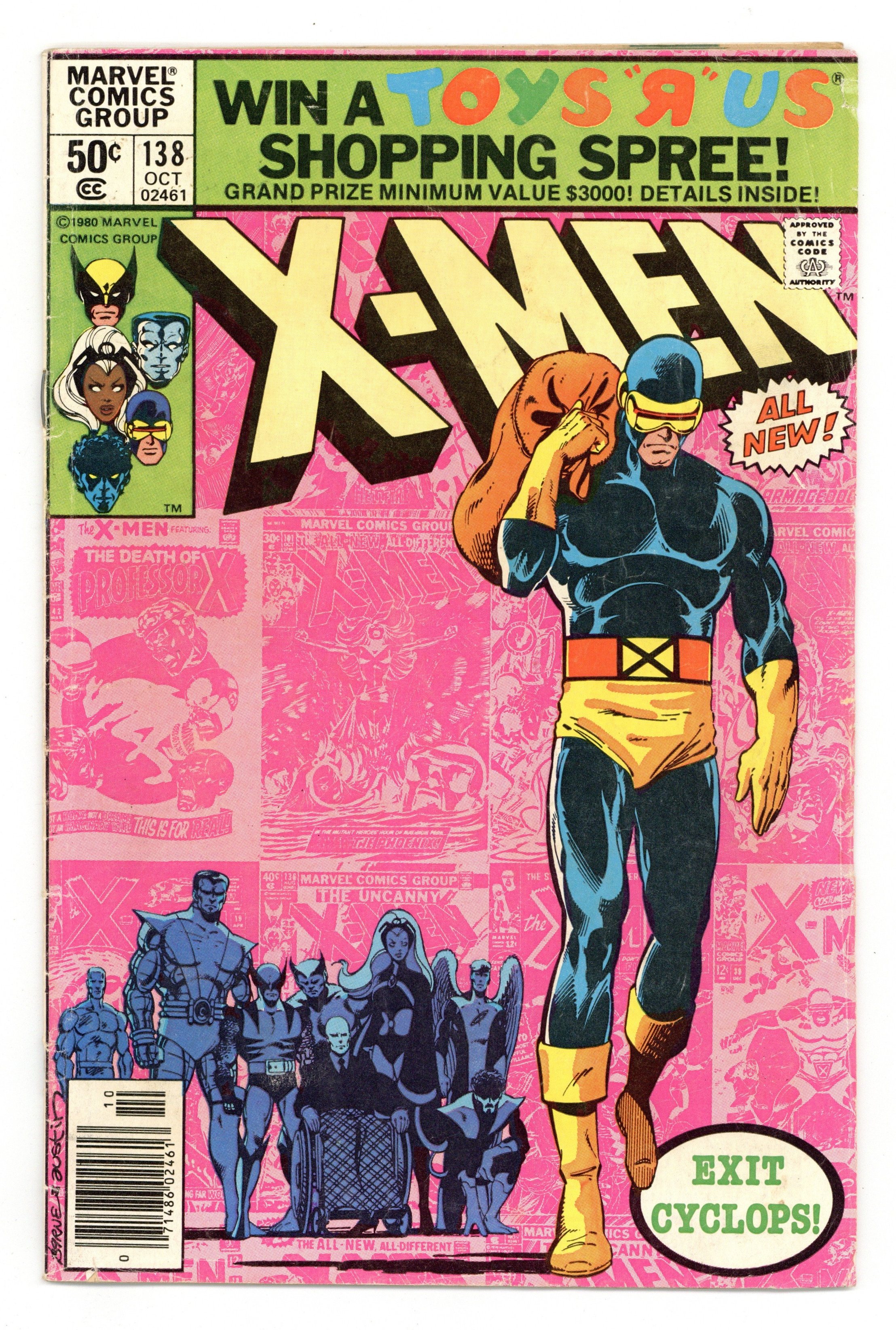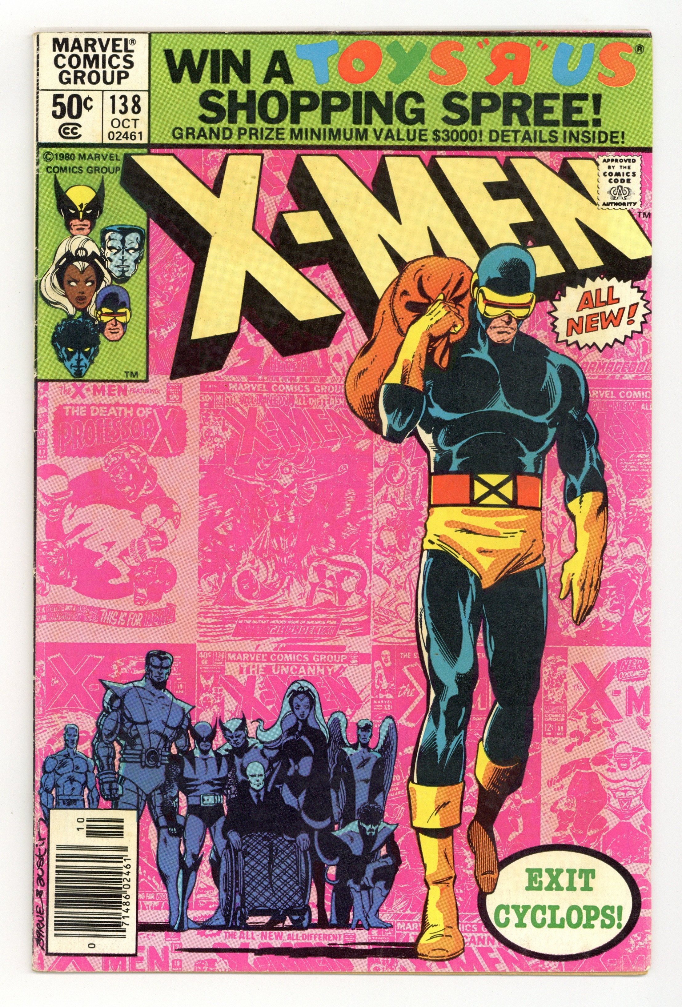 Newsstand Edition. "Elegy!" Story by Chris Claremont and John Byrne. Art by John Byrne and Terry Austin. In the tragic aftermath of last issue's stunning events, the X-Men bury one of their own. Scott relives the history of X-Men and reflects. Overcome with grief, Cyclops decides to leave the X-Men. The team is forced to push on without their heart, Jean Grey, and their soul, Scott Summers. As one member leaves a new member shows up. Featuring flashback appearances by Magneto and the Brotherhood of Evil Mutants, Ka-Zar, the Stranger, Juggernaut, Master Mold and the Sentinels, Count Nefaria, Plant Man, Eel, Porcupine, the Living Laser, the Super-Adaptoid, Mimic, Cobalt Man, Spider-Man, Doctor Strange, Mole Man, Tyrannus, Grotesk, Mesmero, the Living Monolith, Sauron, Sunfire, Krakoa, the Ani-Men, Black Tom Cassidy, the Shi'ar Imperial Guard, Alpha Flight, Garokk the Petrified Man, Moses Magnum, Arcade, Jason Wyngarde/Mastermind, Proteus, the Hellfire Club, and the Dark Phoenix. 36 pgs. Cover price $0.50.