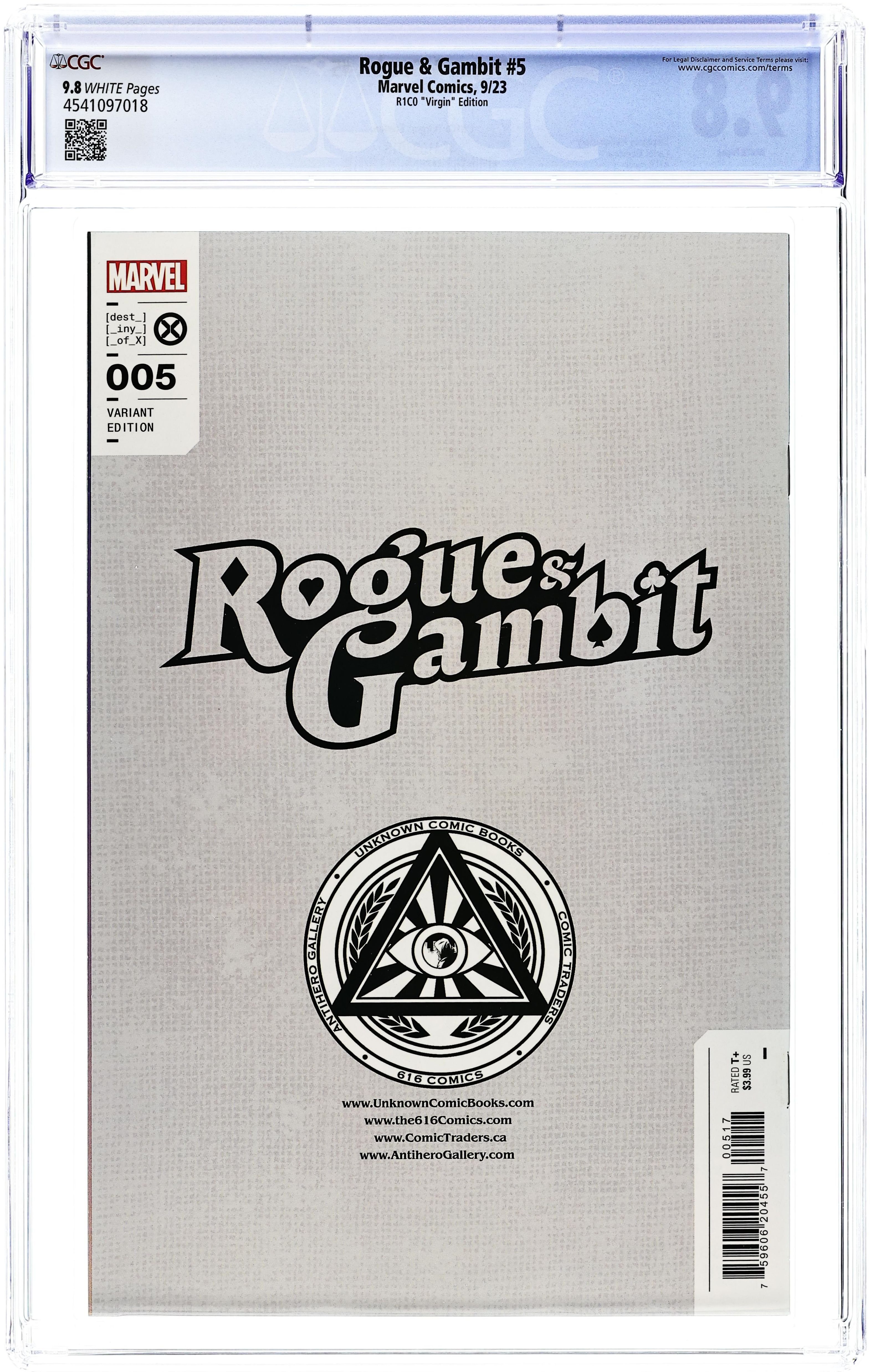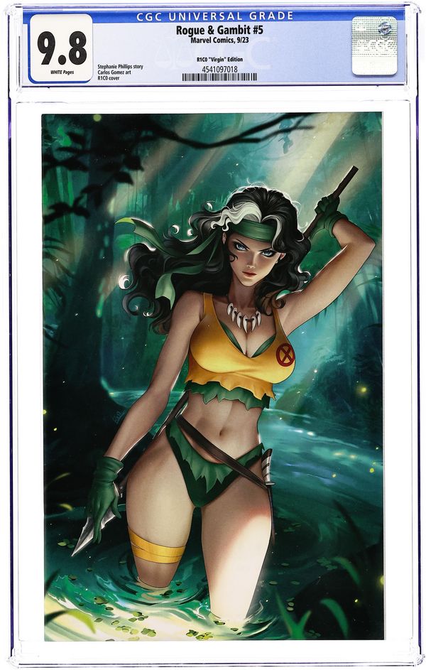 Comics Illuminati (Unknown Comics, Comic Traders, Anti-Hero Gallery, and The 616 Comics) Exclusive Virgin Cover by R1C0. Written by Stephanie Phillips. Art by Carlos Gomez. THE POWERS THAT BREAK! The Power Broker emerges from the shadows to make the deal of a lifetime! Selling was always risky business, but with an asset like Rogue in his Rolodex, the payoff is worth it. Only, Anna Marie isn't one who can be controlled. And while Gambit knows her sweet sideā¦the rest of her can be mighty mean. Rogue crosses a line she can't uncross in a shocking twist that will have repercussions across all Krakoa! 28 pages, full color. Rated T+