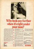 Published Apr 1973 by Milky Way Productions.$3.60Screw was a weekly tabloid newspaper published and edited by Al Goldstein and his Milky Way Productions. This New York based publication was notable for being a pioneer in bringing hardcore pornography into the American mainstream during the late 1960s and early 1970s. Cover by Philippe Weisbecker. Tabloid format, 11.5" x 16.75", 40 pages, B&W. ADULT MATERIAL Cover price $0.75.