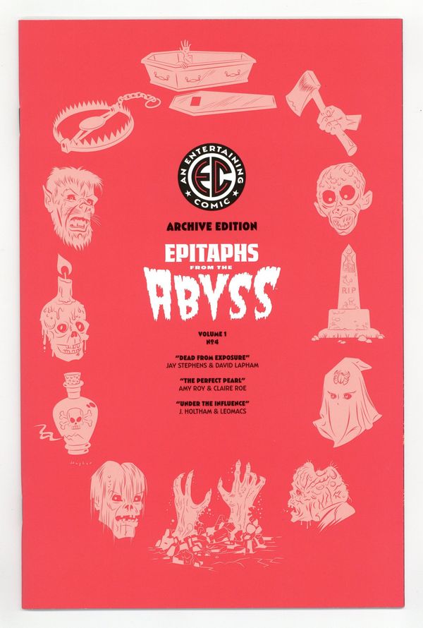 Tags: Zombies$22.00Limited 1 for 50 Retailer Incentive Variant Cover. Written by J Holtham, Amy Roy, Jay Stephens. Art by David Lapham, Claire Roe, Leomacs. Cover by Rian Hughes. IF EVERY TOMBSTONE TELLS A TALE . . . YOU'RE IN LUCK, BECAUSE THIS GRAVEYARD IS FULL OF THEM! You know the drill, comic guys and gals . . . so let's VROOM, VROOM! Fueled by the vengeful spirit of the legendary EC Comics, we proudly present all-new tales of the macabre and merciless from some of the top talents with a penchant for dragging you down to the bottom stair of despair! This month: Live hard, die fast creators J. Holtham and Raúl Allén, Amy Roy and Claire Roe, and Jay Stephens and David Lapham welcome you in the cold grasp of the ABYSS-there's no need to RSVP, and time shares are available! 32 pages, full color. Rated T+ Cover price $4.99.