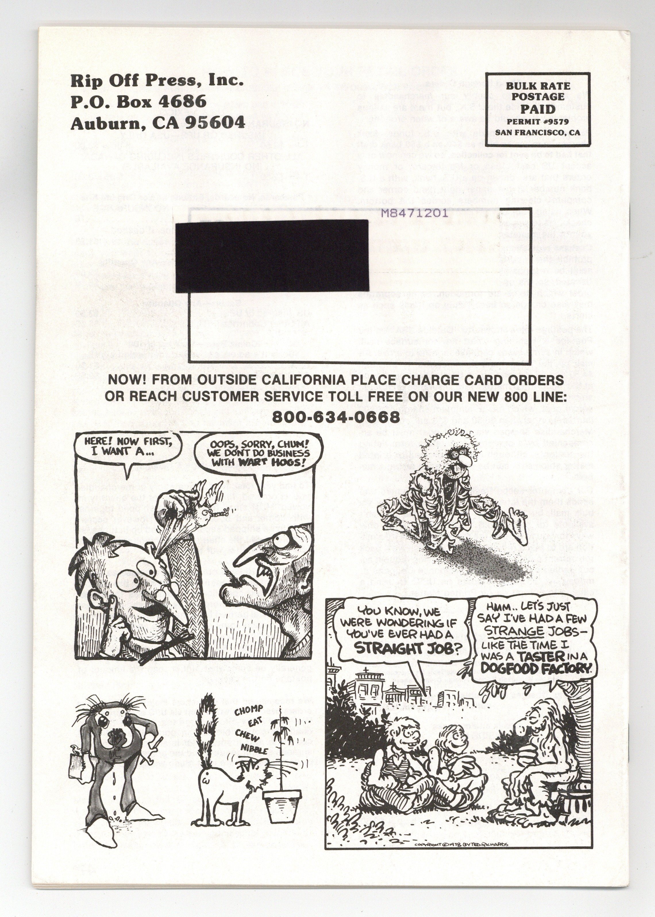 Published 1988 by Rip Off Press.$30.00Spring Catalog. 1988. Fabulous Furry Freak Brothers cover. 7" x 10", 48 pages, B&W.