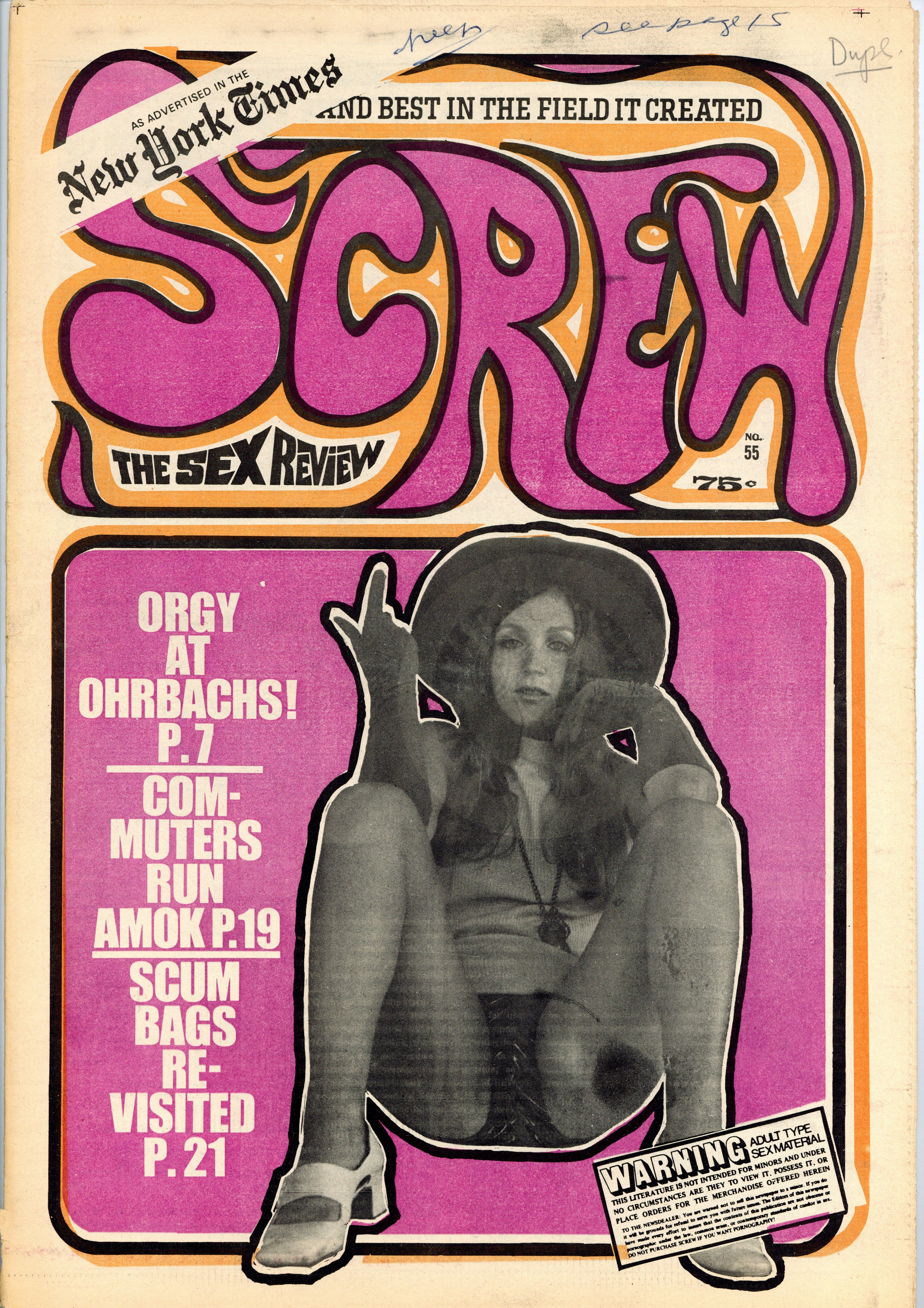 Published Mar 1970 by Milky Way Productions.$9.60Screw was a weekly tabloid newspaper published and edited by Al Goldstein and his Milky Way Productions. This New York based publication was notable for being a pioneer in bringing hardcore pornography into the American mainstream during the late 1960s and early 1970s. Tabloid format, 11.5" x 16.75", 32 pages, B&W. ADULT MATERIAL Cover price $0.75.