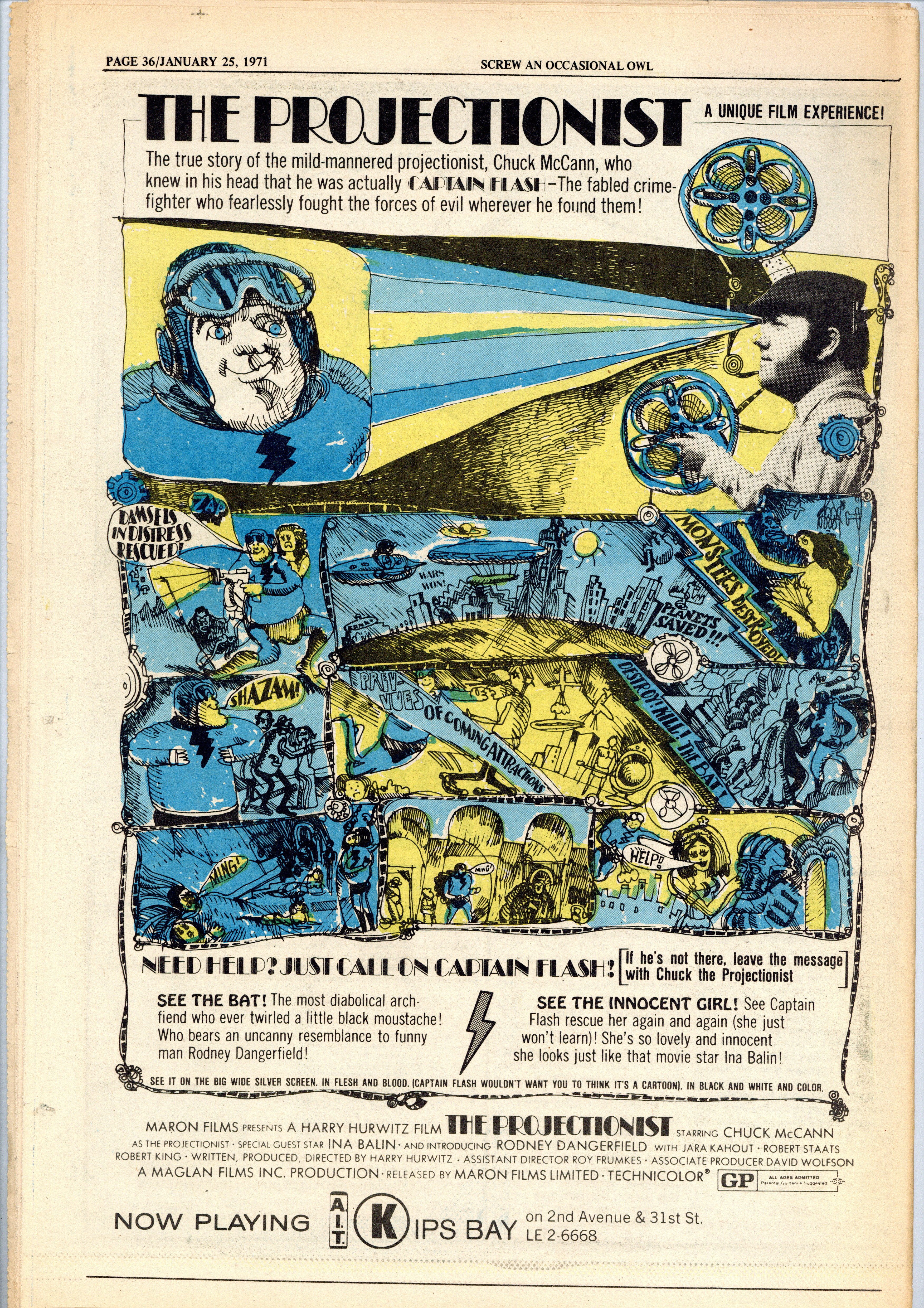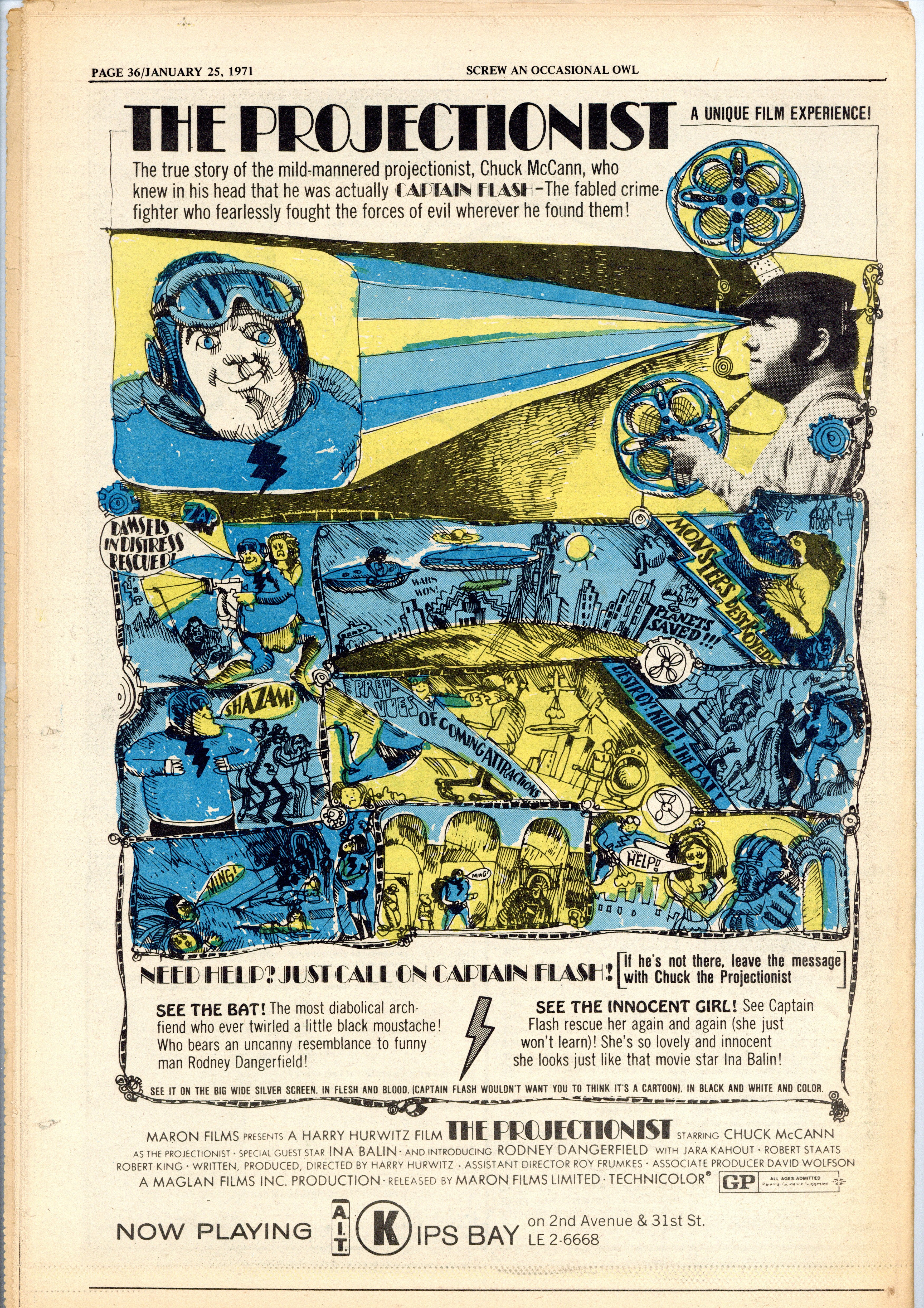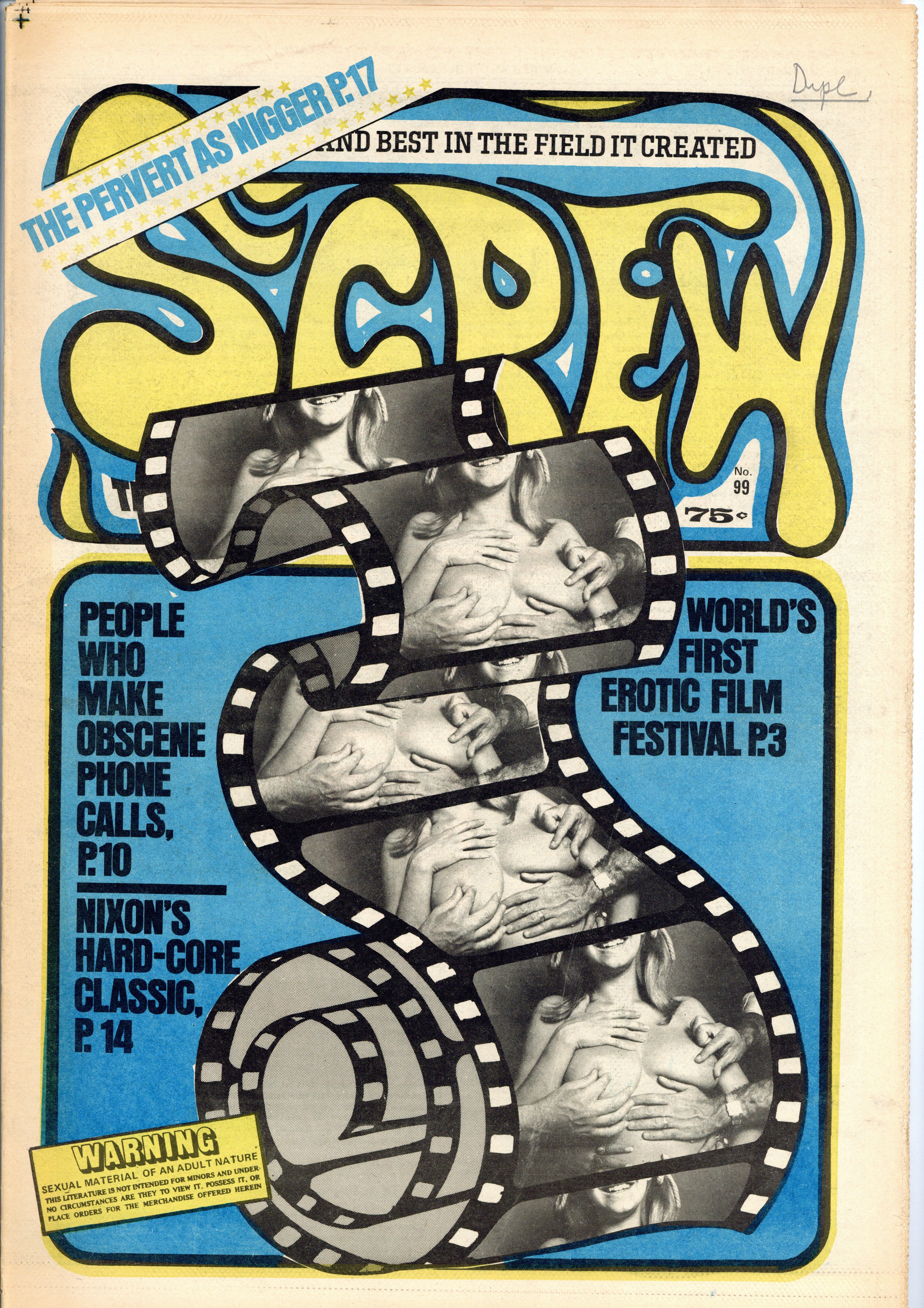 Published Jan 1971 by Milky Way Productions.$9.00Screw was a weekly tabloid newspaper published and edited by Al Goldstein and his Milky Way Productions. This New York based publication was notable for being a pioneer in bringing hardcore pornography into the American mainstream during the late 1960s and early 1970s. Tabloid format, 11.5" x 16.75", 36 pages, B&W. ADULT MATERIAL Cover price $0.75.