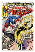 Tags: Spider-Man$21.00Newsstand Edition. "The Wings of the Fearsome Fly!" Script by Marv Wolfman. Art by Keith Pollard (layouts) and Jim Mooney (finishes). Cover by Al Milgrom and Bob McLeod. Peter Parker's life is a train wreck after surviving his recent 24-hour ordeal. In very short order Jonah fires him, Mary Jane dumps him, and Ned Leeds punches him! Oh my, where is a super-villain when Spidey really needs one? Fortunately, there is one flying around town for the web-slinger to vent his frustration upon: the Fearsome Fly! But when the wall-crawler and the Fly collide at Cleopatra's Needle, Spider-Man's day just gets worse. Meanwhile, the original burglar from Amazing Fantasy 15 is back...and still haunting (Aunt) May Parker. Cameo appearances by Mary Jane Watson, Betty Brant, and Mysterio (in civilian clothes). (Notes: The Fly appears next in Spider-Woman 30. The plot briefly crosses over with Fantastic Four 207. Other than a cameo appearance in issue 201, Mary Jane Watson exits the Amazing Spider-Man series for the next 4 years.) 36 pages. Cover price $0.40.