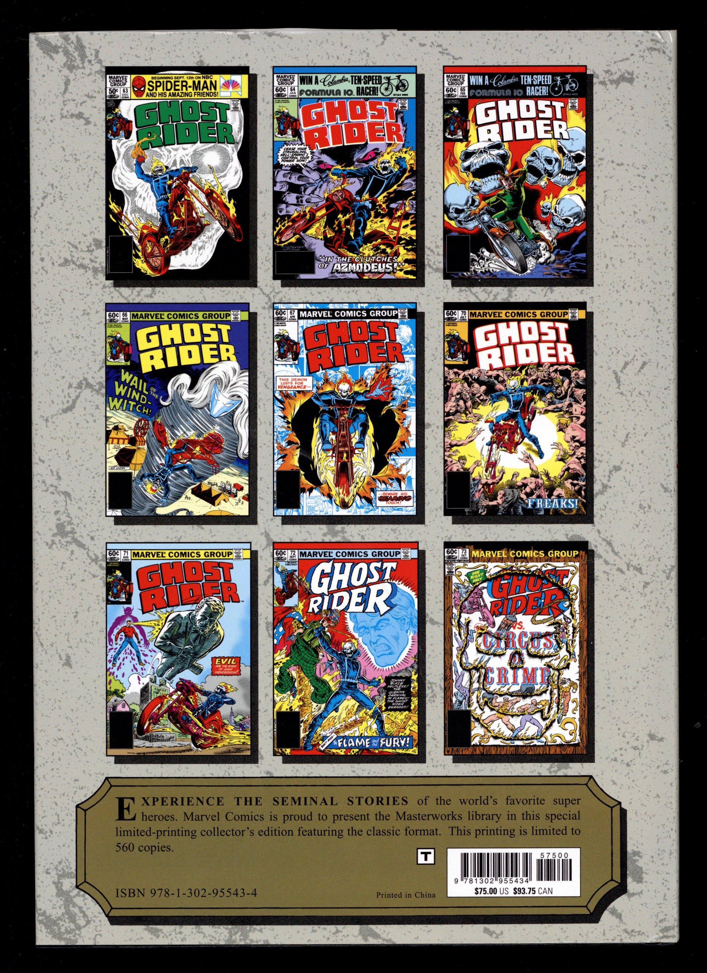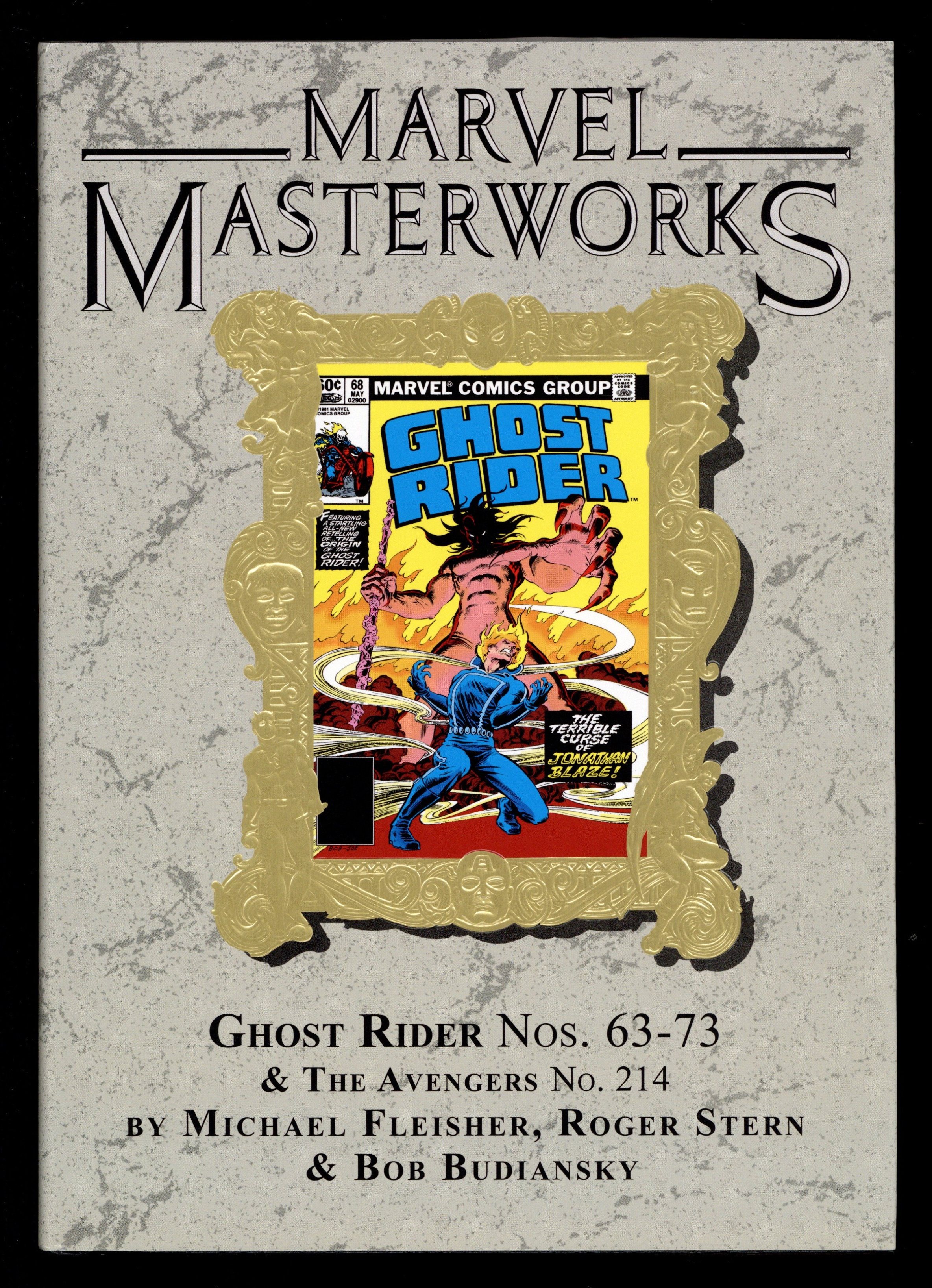 Volume 366 - 1st printing. "Ghost Rider: Book 6!" Collects Ghost Rider (1973-1983 1st Series) #63-73 and The Avengers (1963-1996 1st Series) #214. Written by Michael Fleisher, J.M DeMatteis, Roger Stern, and Jim Shooter. Art by Bob Budiansky, Luke McDonnell, Jack Sparling, Tom Sutton, Don Perlin, Bob Hall, Sal Trapani, Dave Simons, Joe Rubinstein, Danny Bulanadi, and Dan Green. Cover by Bob Budiansky and Joe Rubinstein. Introductions by Bob Budiansky and Roger Stern. Johnny Blaze's ability to control the unrelenting demonic power of the Ghost Rider is starting to fail - and when the Spirit of Vengeance can range free, his wrath will know no limits! Villains from the overly ocular Orb to Azmodeus don't know what's in store for them. What do we have in store for you? Not just another full tank of GHOST RIDER, but the beginning of the creative runs of fan-favorite writers Roger Stern and J.M. DeMatteis, and high-octane artist Bob Budiansky! They rejuvenated the series, bringing higher stakes, even more suspenseful storytelling and classic moments for every horror-hero fan to love: Ghost Rider goes to confession! The Freakmaster! Killer clowns! And a demon biker ready to burn rubber and mete out the vengeance of Hell! Hardcover, 304 pages, full color. Rated T Cover price $75.00.