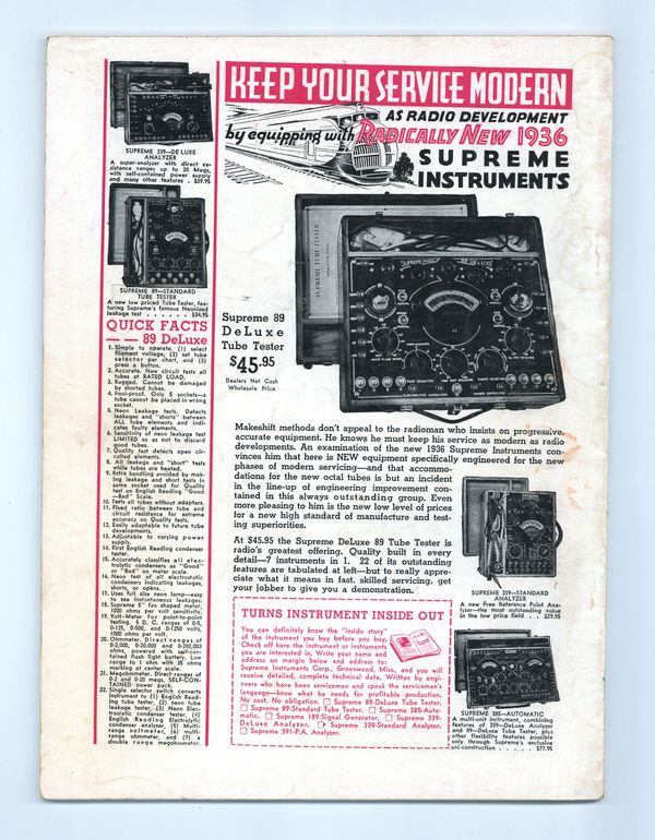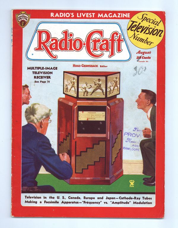 Published Aug 1935 by Radcraft Publications.$14.25Published by Hugo Gernsback, considered the father of science-fiction. This issue is centered around the new medium of television with Gernsback's editorial, "The Television Age". 8.5" x 11.5". 128 pages. Black and white. Cover price $0.25.