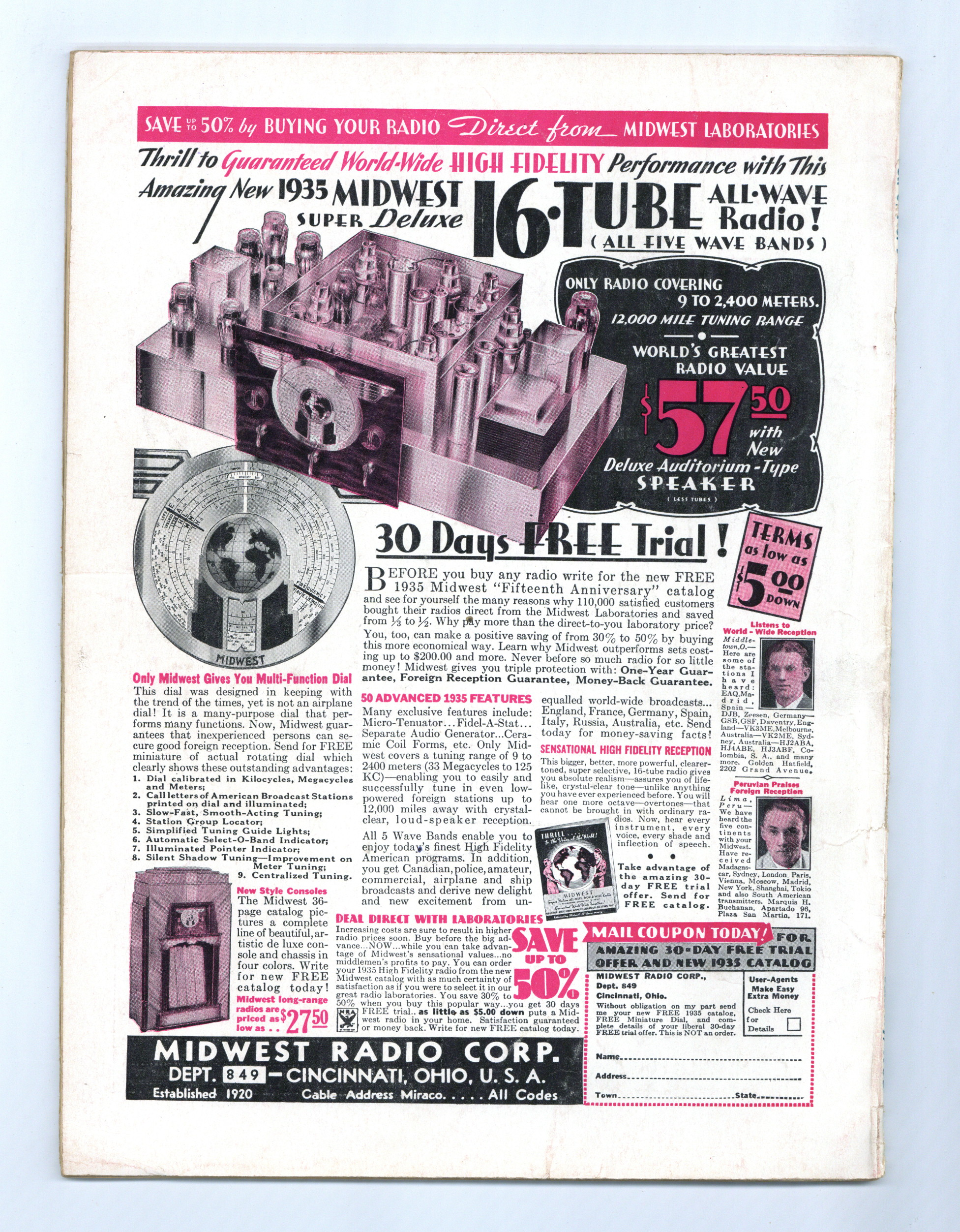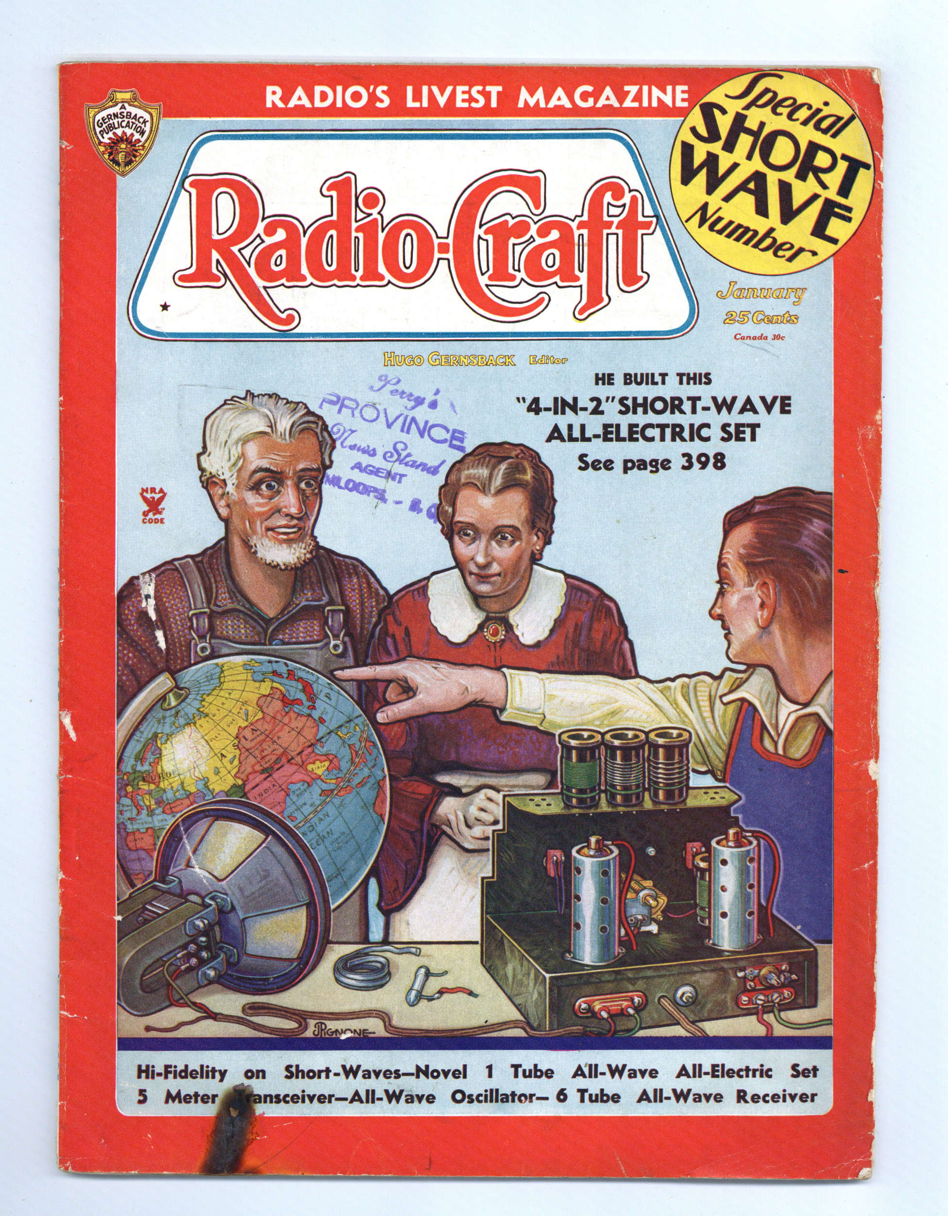 Published Jan 1935 by Radcraft Publications.$9.60Published by Hugo Gernsback, considered the father of science-fiction. This issue is centered around the new medium of television with Gernsback's editorial, "The Television Age". 8.5" x 11.5". 128 pages. Black and white.