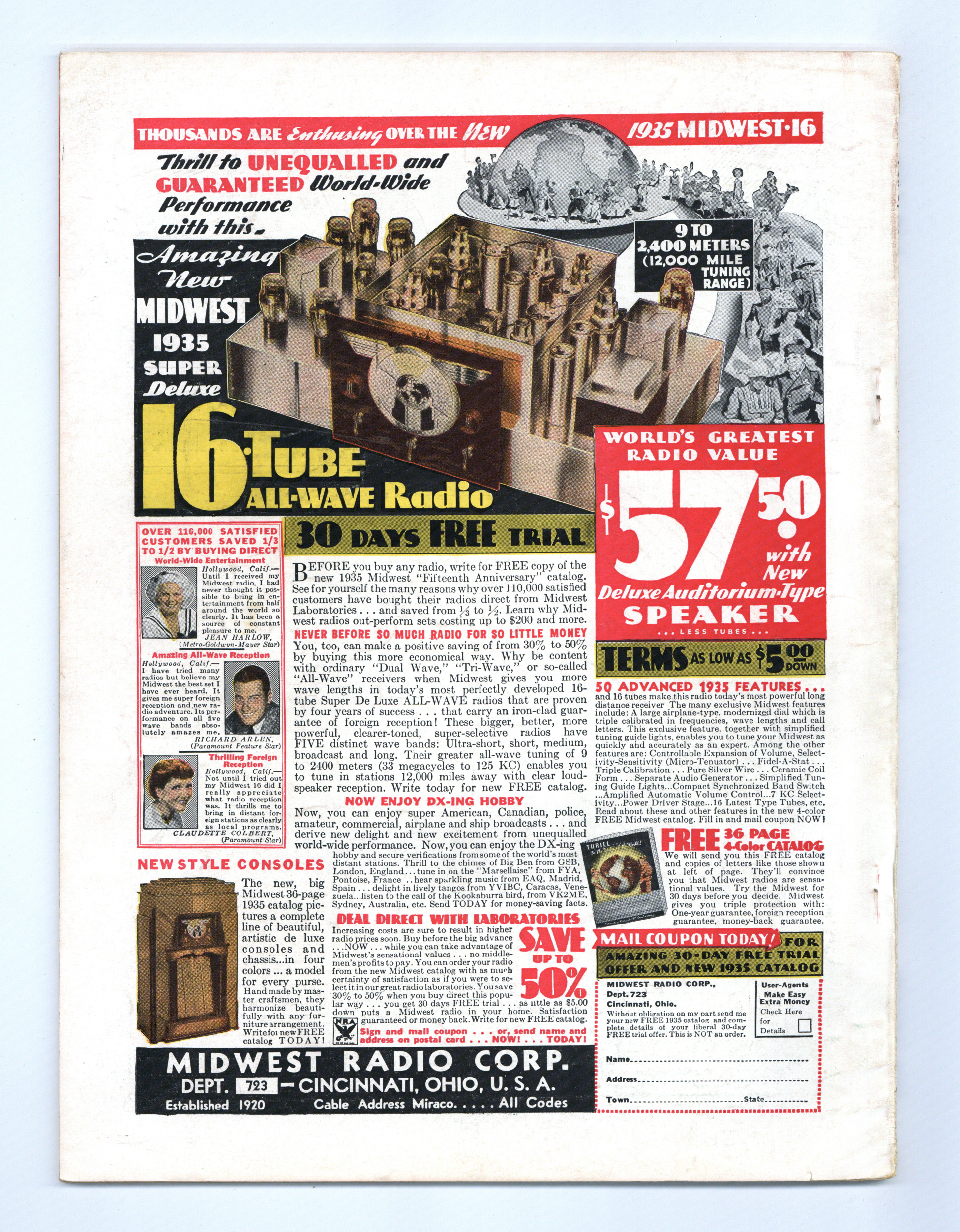 Published Nov 1934 by Radcraft Publications.$19.00- Front cover detached 5%. Staple rust: Slight.