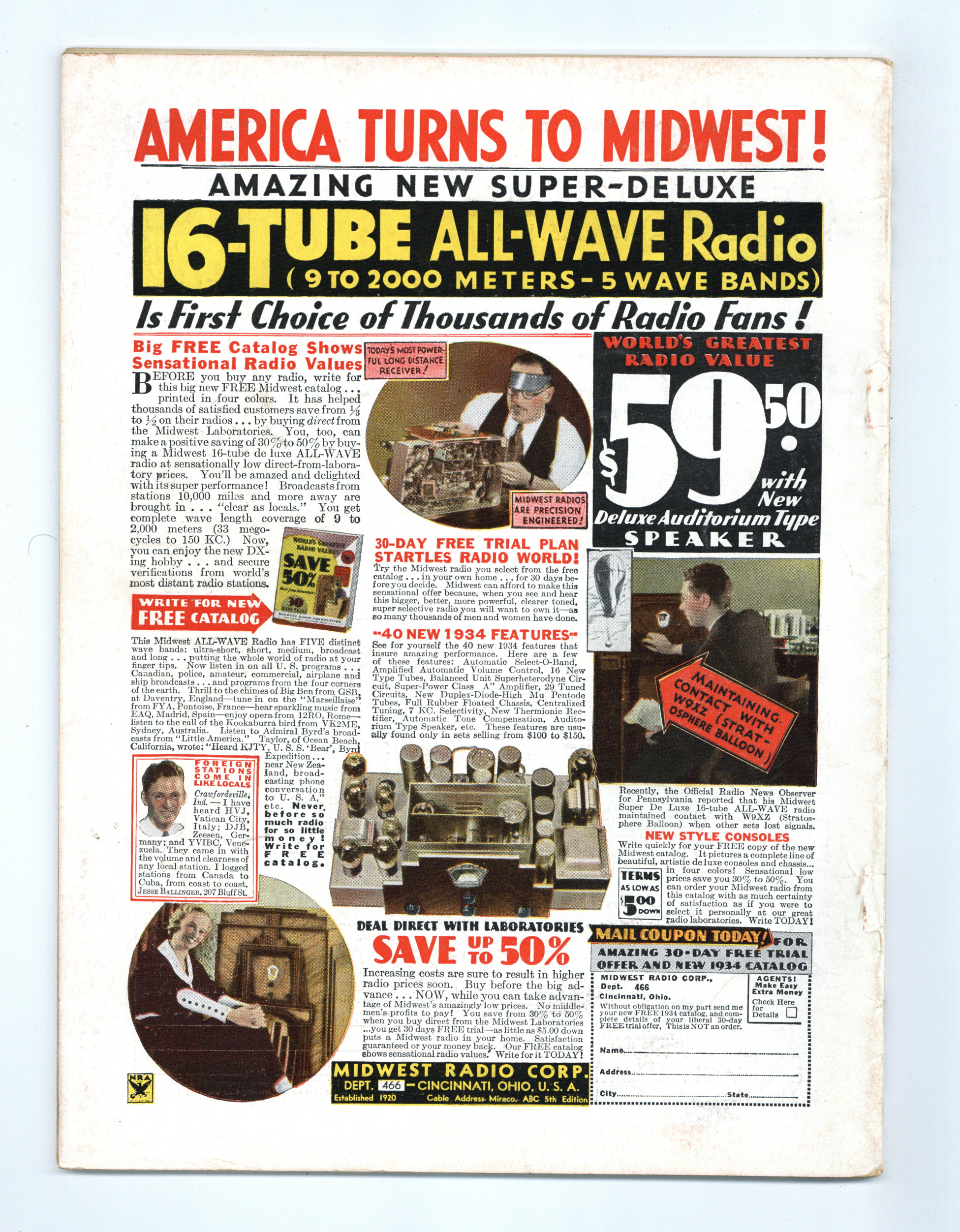 Published Mar 1934 by Radcraft Publications.$14.25Vol. 5, No. 9 - March, 1934. 8.25" x 11.25", 68 pages, B&W. Cover price $0.25.
