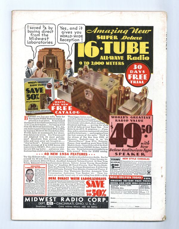 Published Feb 1934 by Radcraft Publications.$10.75- Back cover detached 5%.