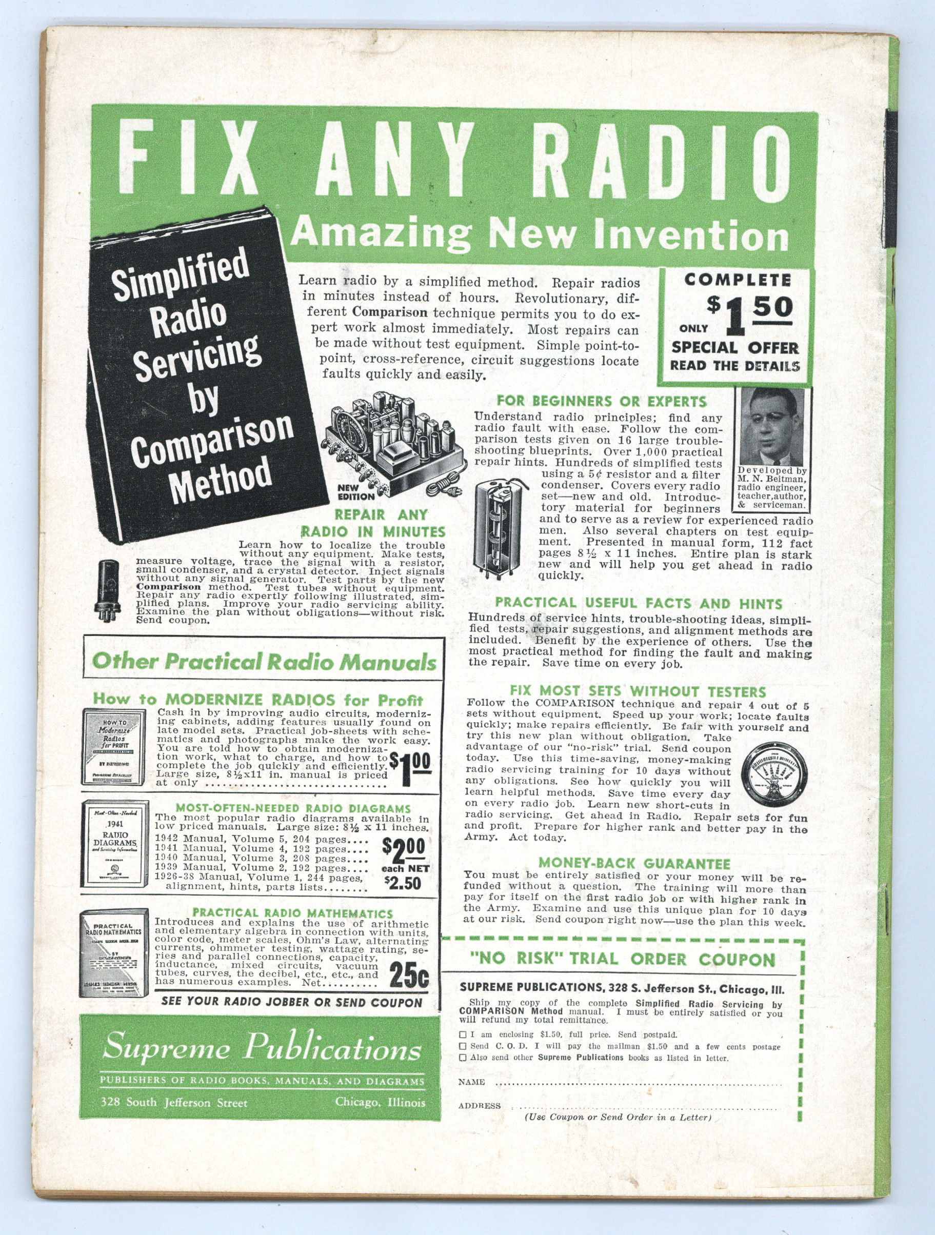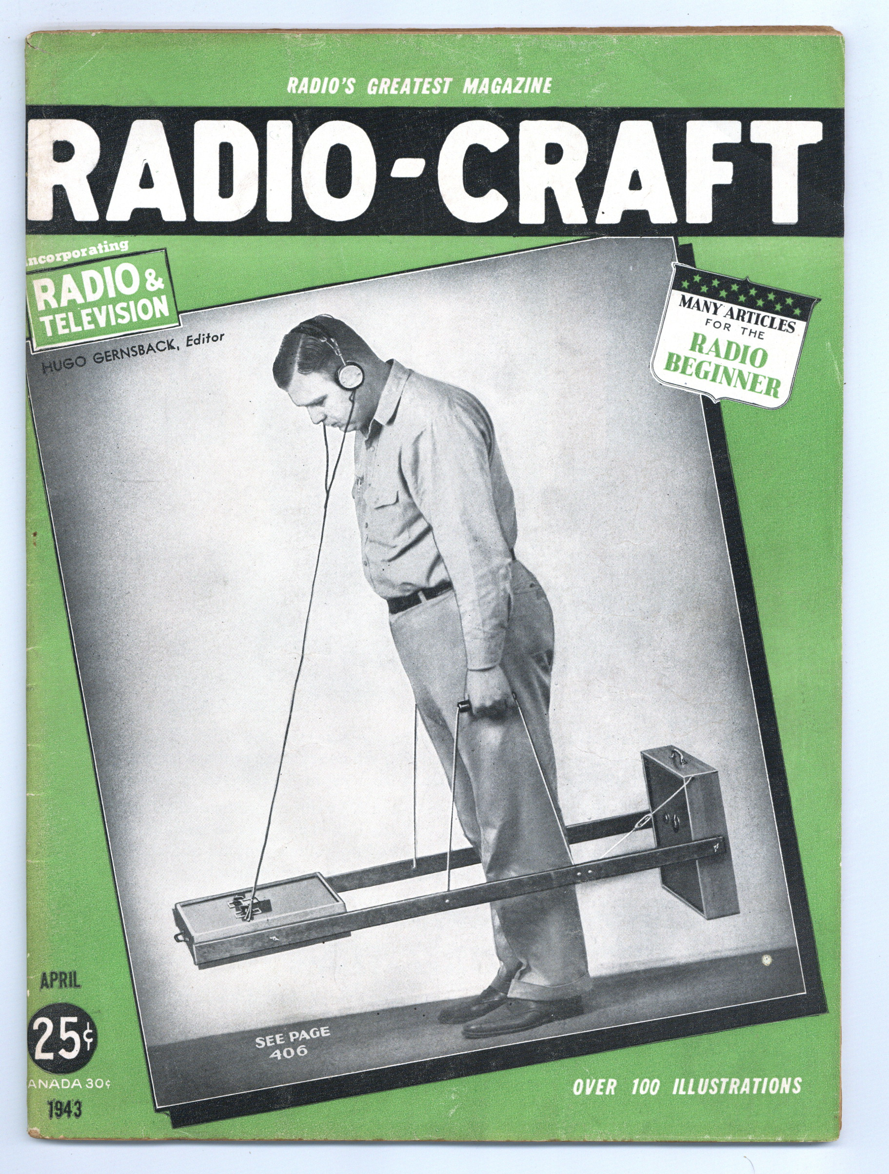 Published Apr 1943 by Radcraft Publications.$16.00Vol. 14, No. 7 - April 1943. Published by Hugo Gernsback, considered the father of science-fiction. Features Dr. Joseph Slepian's article "Electronics Primer". 8.5" x 11.5". 67 pages. Black and white. Cover price $0.25.