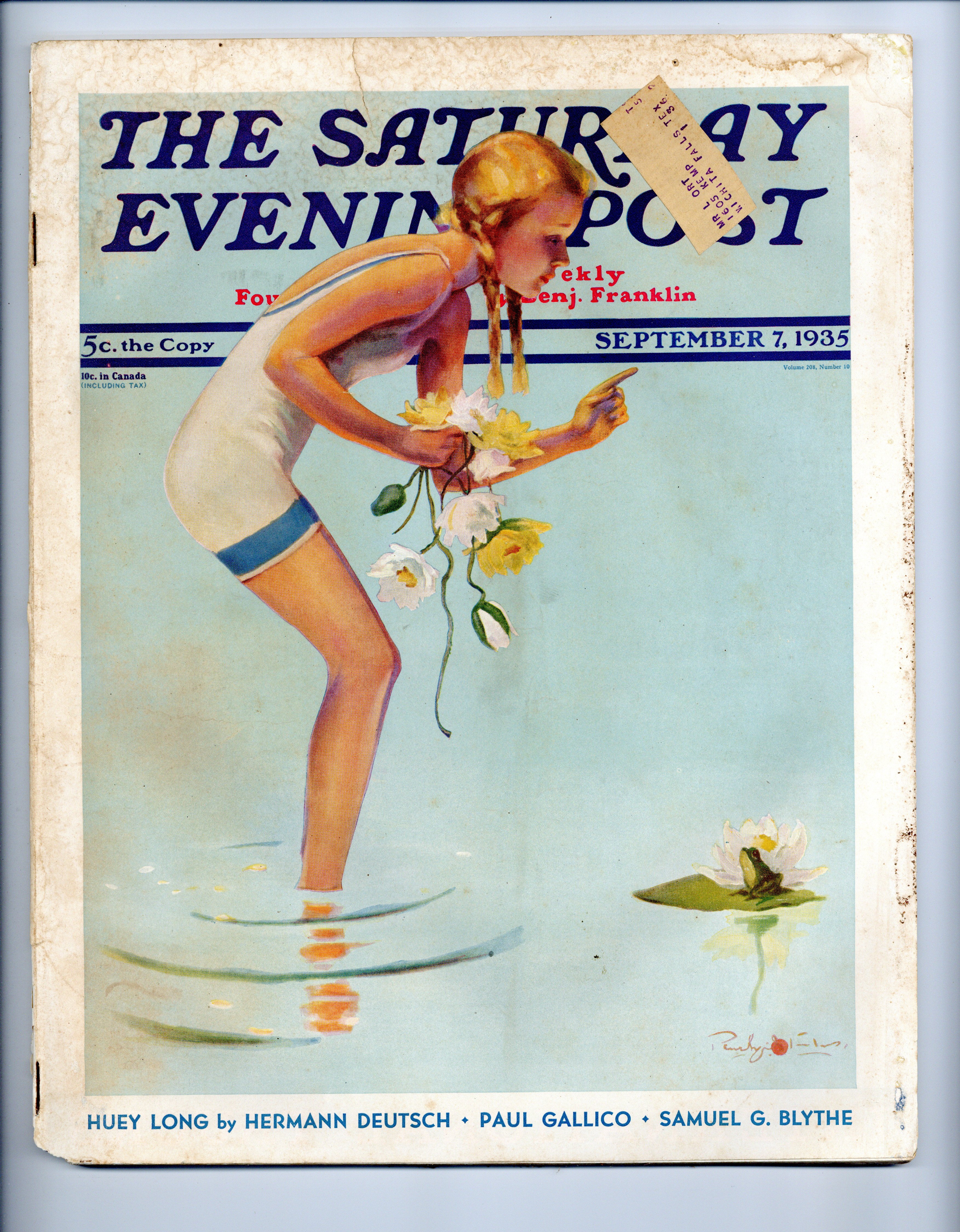 Vol. 208 #10 - September 7, 1935. The classic magazine featuring current event articles, editorials, human interest pieces, humor, illustrations, a letter column, poetry, single-panel gag cartoons, and stories by the leading writers of the time. 11 1/4-in. x 14 1/4-in., 104 pages, B&W. Cover price $0.05.