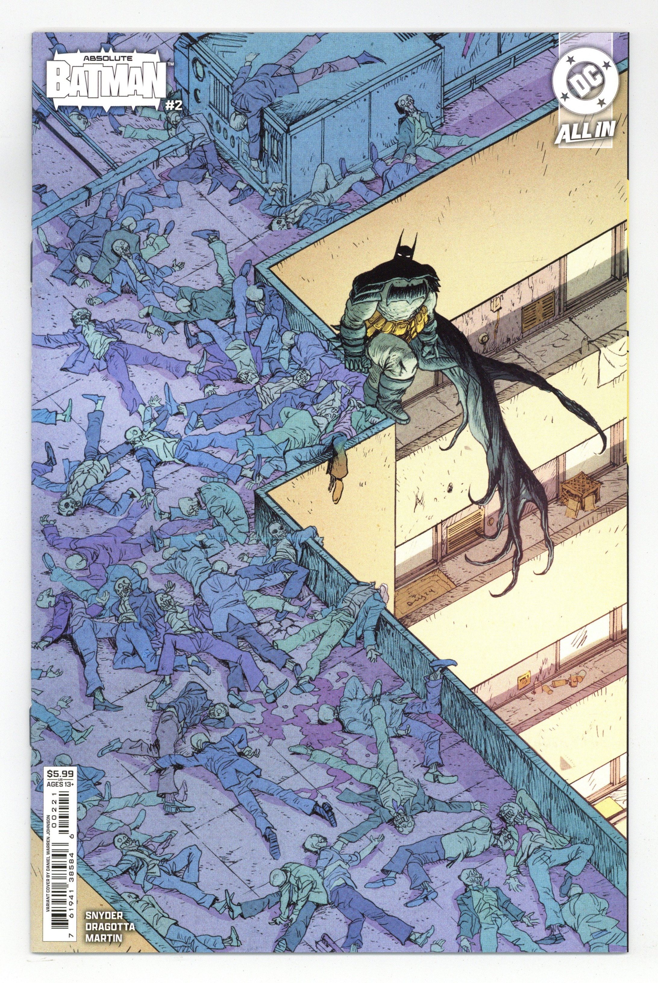 $30.00Written by Scott Snyder. Art by Nick Dragotta. Cover by Daniel Warren Johnson. SNYDER AND DRAGOTTA'S BRAND-NEW TAKE ON THE DARK KNIGHT RAMPAGES ON! Batman was born out of violence - a horrible tragedy that shaped the trajectory of his future. But when a vigilant MI6 agent starts tracking the lonely life of Bruce Wayne, he discovers the interconnectivity between a hero's shell life and the many layers of the Black Mask Gang. It's Batman versus Alfred Pennyworth! 32 pages, full color. Rated T+ Cover price $5.99.