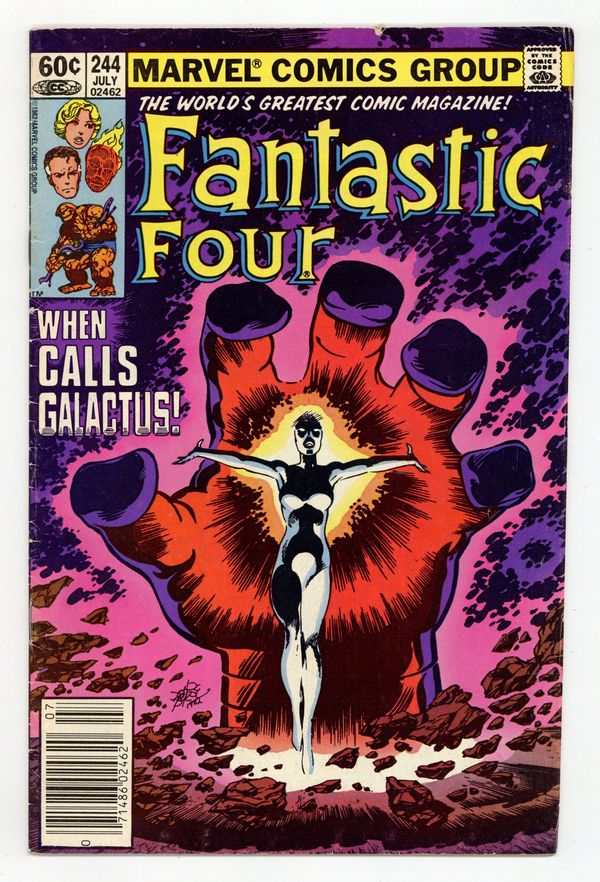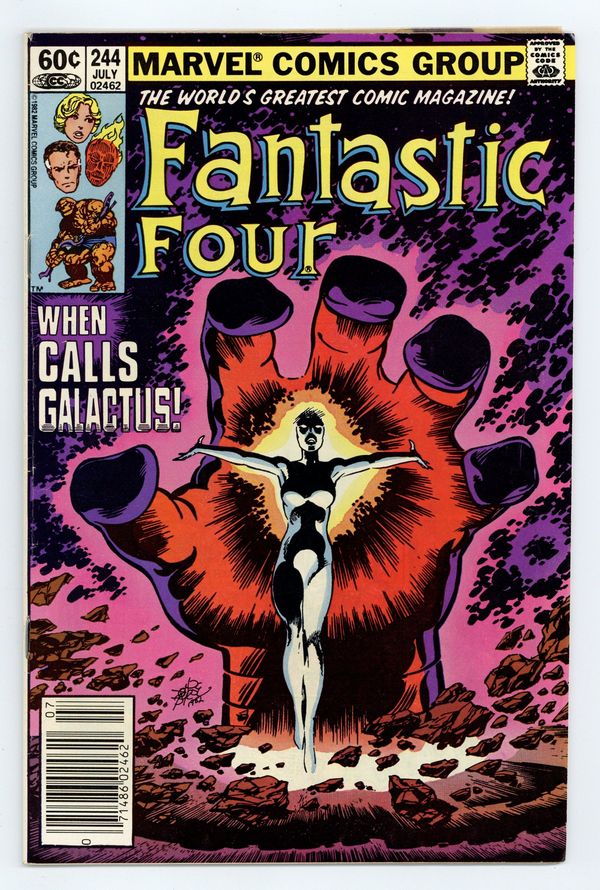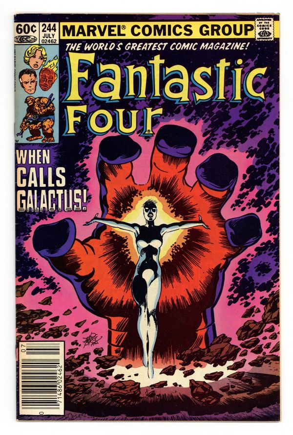 Tags: Fantastic Four$29.00Newsstand Edition. "Beginnings and Endings" Part 3 of 3. Script and Art by John Byrne. Cover by John Byrne. After an unprecedented victory over Galactus, the Avengers and the Fantastic Four face a major ethical decision: should they try to save the Ravager of Worlds or let him perish as his energies dwindle? Reed decides on the former and constructs a giant machine to revitalize Galactus! However, the Devourer of Worlds needs one more thing to complete his recovery...a new herald! In a stunning move, Frankie Raye volunteers! So where does that leave the Human Torch? First appearance of Nova (aka Frankie Raye). Cameo appearances by Captain America, Iron Man, Thor, Wasp, and Doctor Strange. (Notes: This trilogy was reprinted in 1989 in the trade paperback titled "Fantastic Four: Trial of Galactus." Reed's decision to save Galactus will come back to haunt the FF beginning in Fantastic Four 257.) 36 pages Cover price $0.60.
