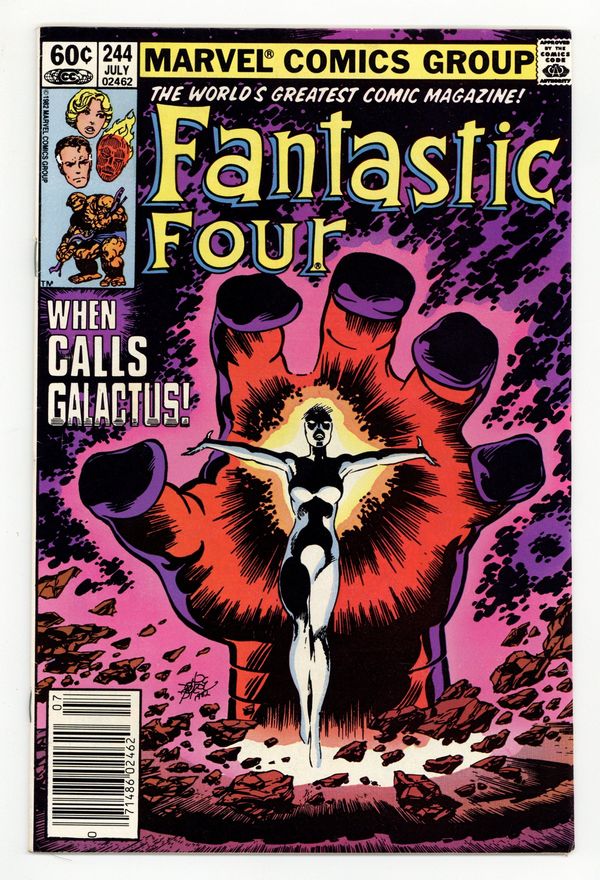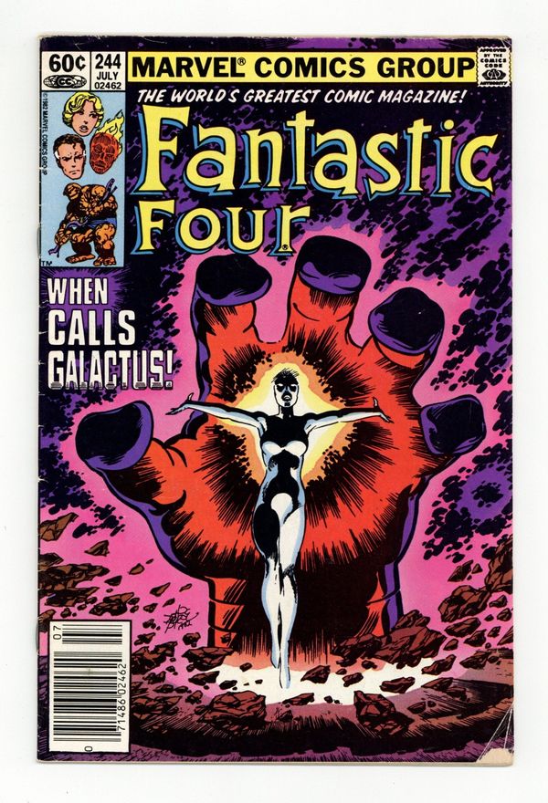 Newsstand Edition. "Beginnings and Endings" Part 3 of 3. Script and Art by John Byrne. Cover by John Byrne. After an unprecedented victory over Galactus, the Avengers and the Fantastic Four face a major ethical decision: should they try to save the Ravager of Worlds or let him perish as his energies dwindle? Reed decides on the former and constructs a giant machine to revitalize Galactus! However, the Devourer of Worlds needs one more thing to complete his recovery...a new herald! In a stunning move, Frankie Raye volunteers! So where does that leave the Human Torch? First appearance of Nova (aka Frankie Raye). Cameo appearances by Captain America, Iron Man, Thor, Wasp, and Doctor Strange. (Notes: This trilogy was reprinted in 1989 in the trade paperback titled "Fantastic Four: Trial of Galactus." Reed's decision to save Galactus will come back to haunt the FF beginning in Fantastic Four 257.) 36 pages Cover price $0.60.