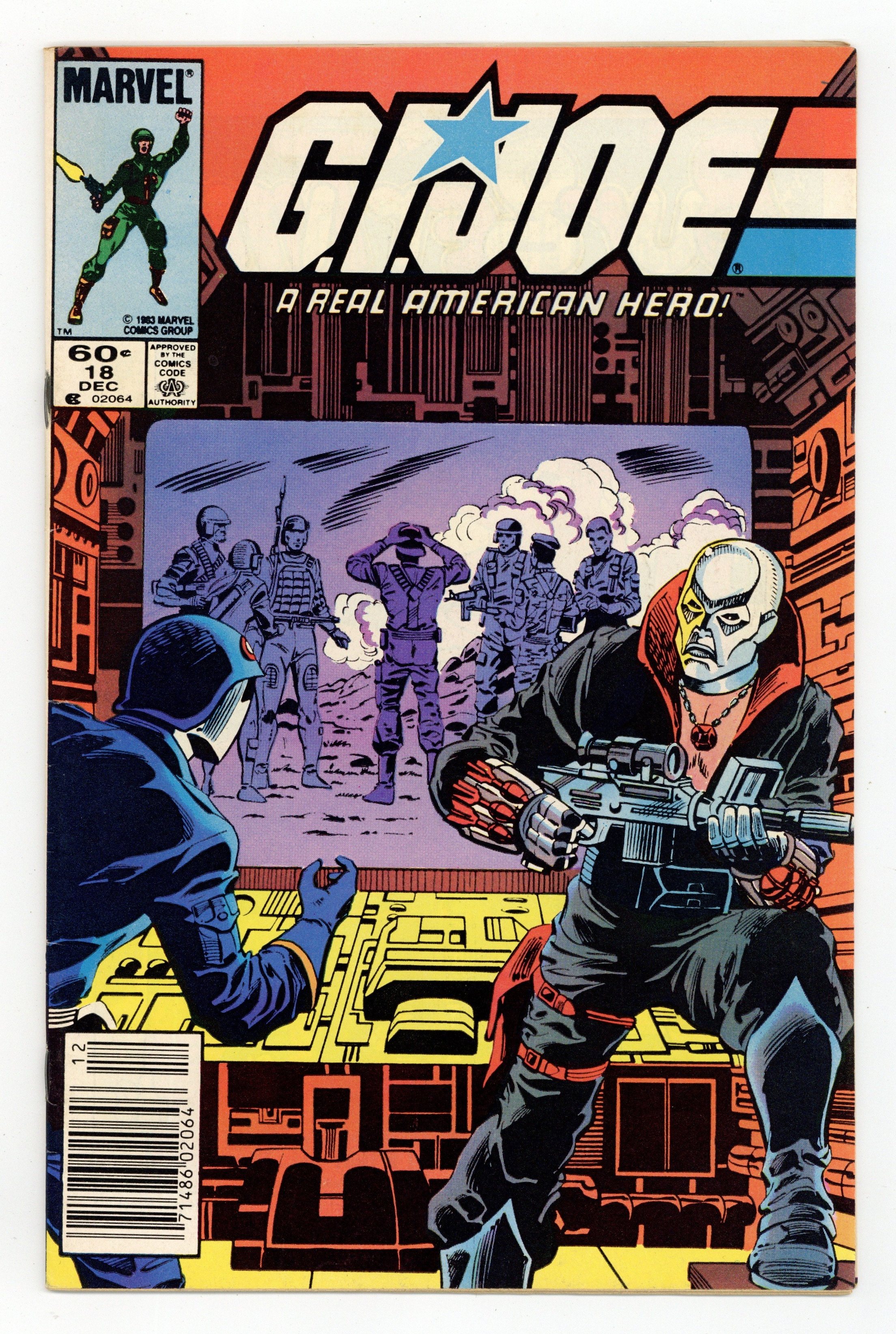 First printing. Newsstand Edition. "Destro Returns!" Written by Larry Hama. Art by Mike Vosburg and Jon D'agostino. Snake-Eyes, along with Kwinn, are finally reunited with the rest of the Joes as they battle Destro on Coney Island. Hawk captures ScarFace. Cover price $0.60.