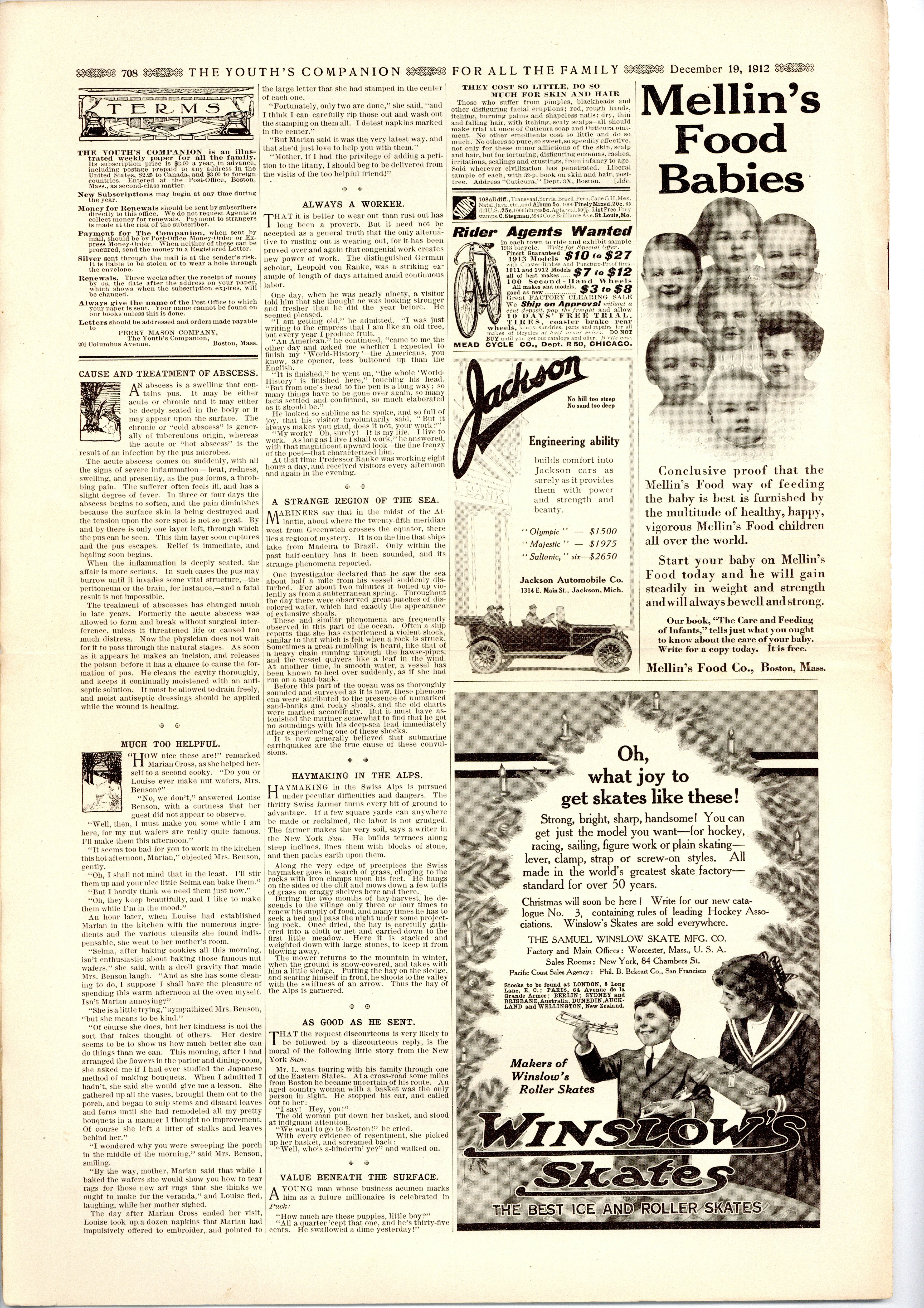 Published Dec 1912 by Perry Mason Company.$6.20- Spine split 20%. Staple rust: Extensive.